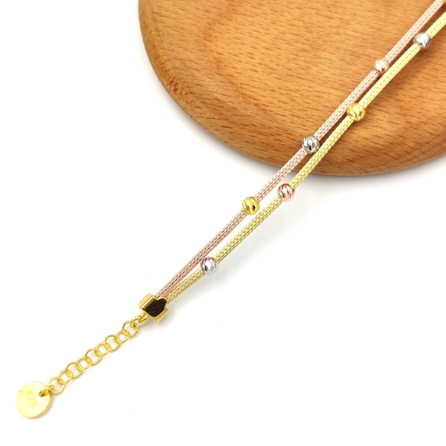 ALTIN VE ROSE ALTIN KAPLAMA ÇİFT SIRA DORİCA BİLEKLİK