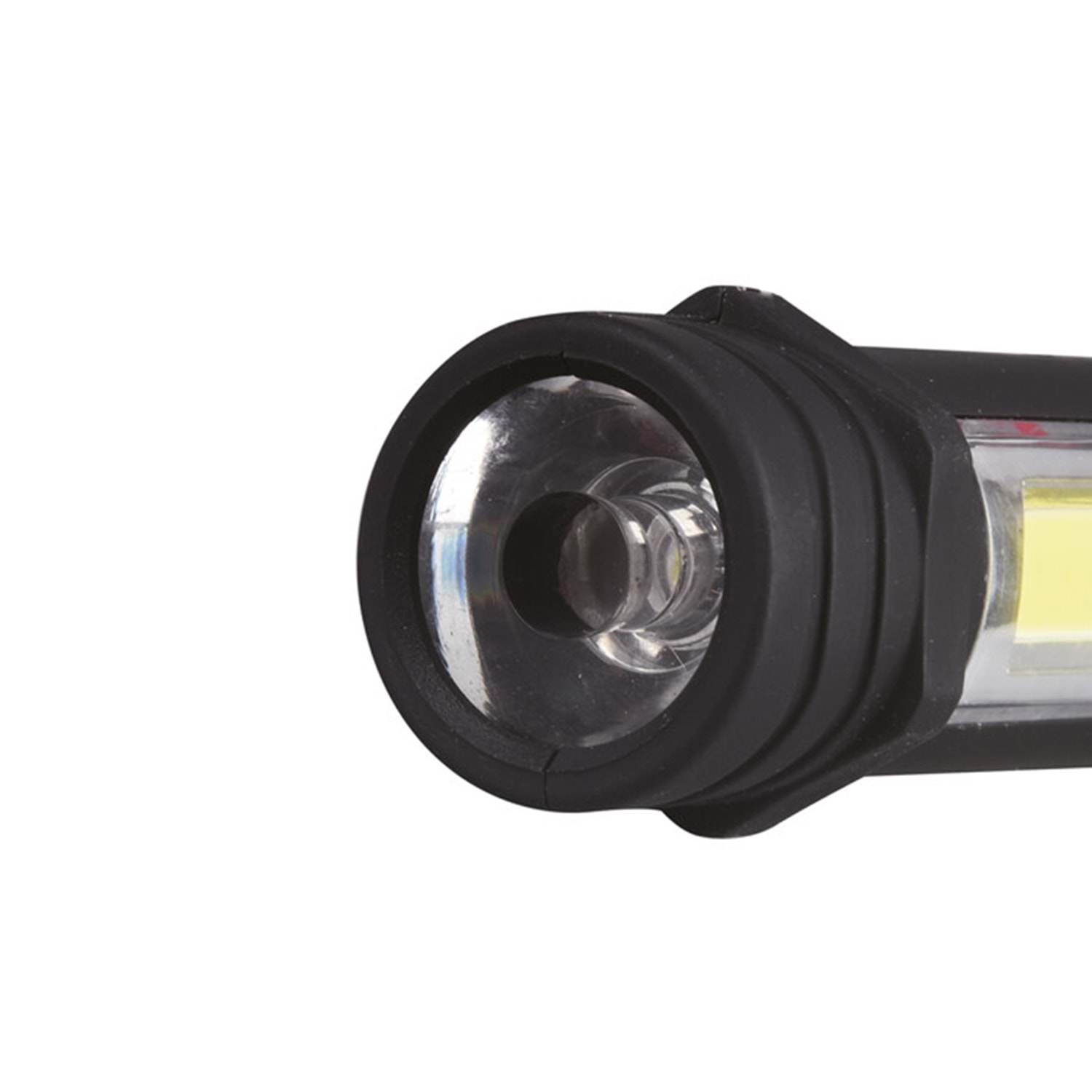 Aç/Kapa düğmesine basınca sırasıyla ön taraftaki 3W Led; Çok Işık modunda, sonraki basışlarda ise yan Cob Led Çok Işık, Orta Seviye Işık ve Flaşör modlarında yanar.