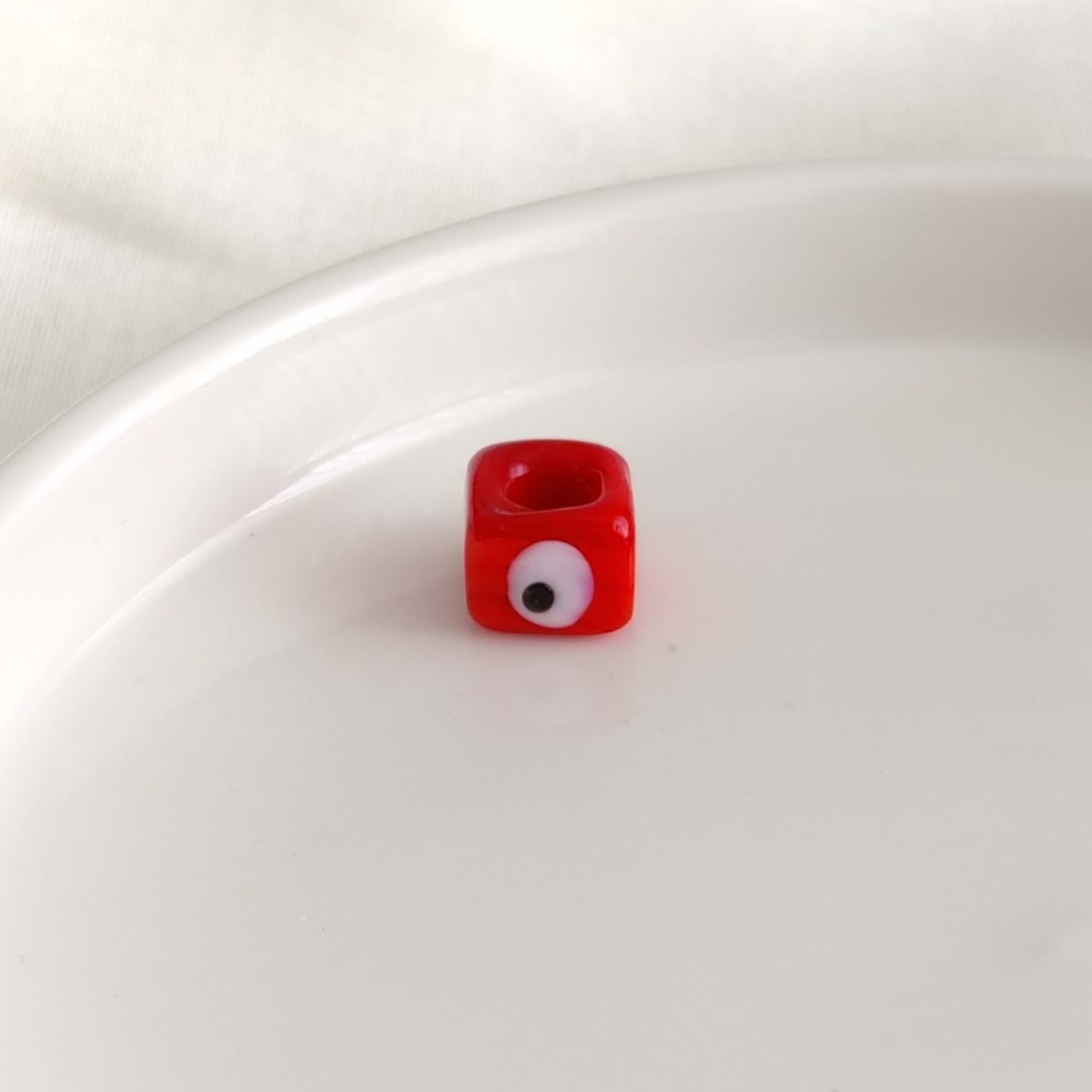 RENKLİ MURANO GÖZLÜ KARE CAM BONCUK 1 ADET - KIRMIZI