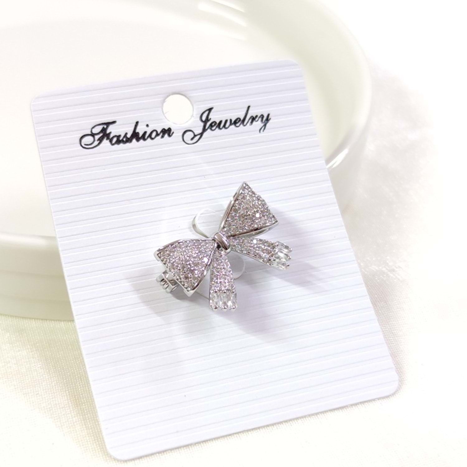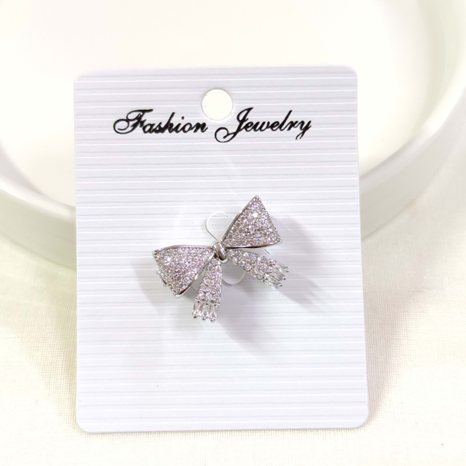 TAŞLI MİNİ FİYONK BROŞ - BEYAZ