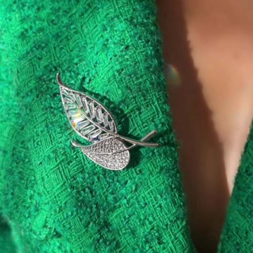 ZİRKON TAŞLI BAGET ÇİÇEKLİ BROŞ GOLD