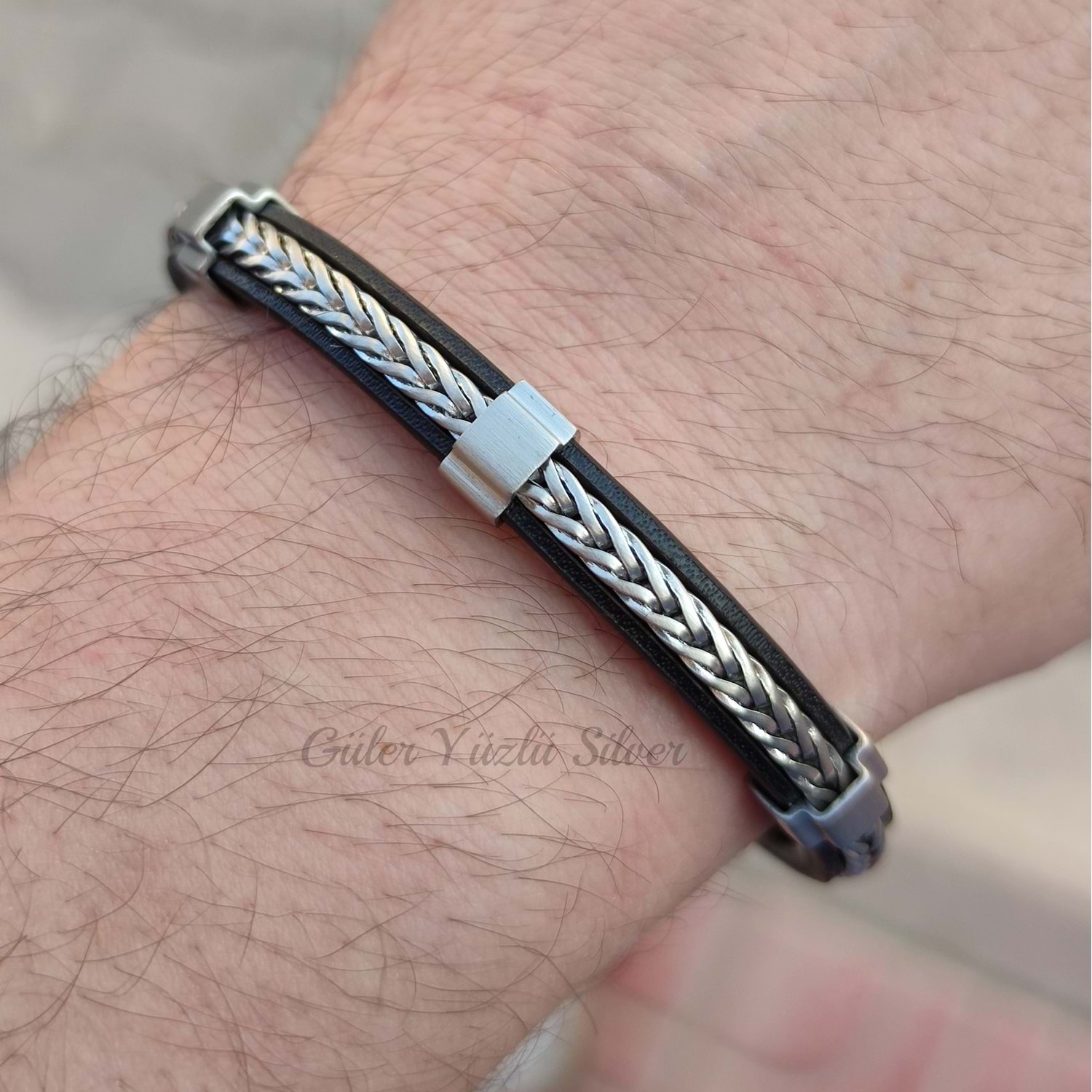 3 BOĞUMLU ZİNCİR DERİ ÇELİK ERKEK BİLEKLİK