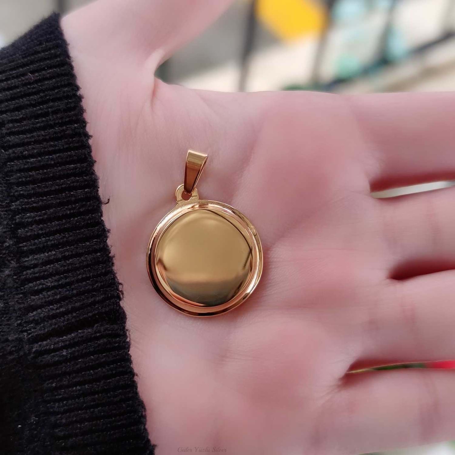 316L ÇELİK YUVARLAK PLAKA KOLYE UCU - ALTIN SARI