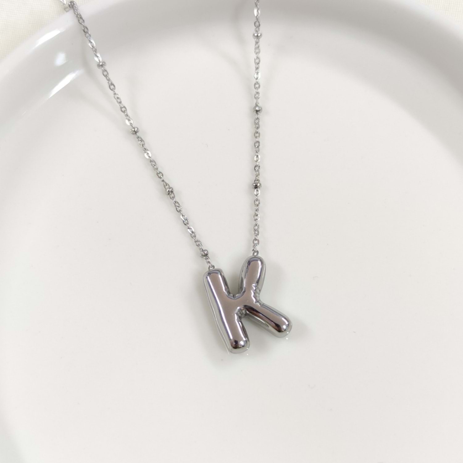 ÇELİK BOMBELİ BEYAZ HARF KOLYE - K HARFİ