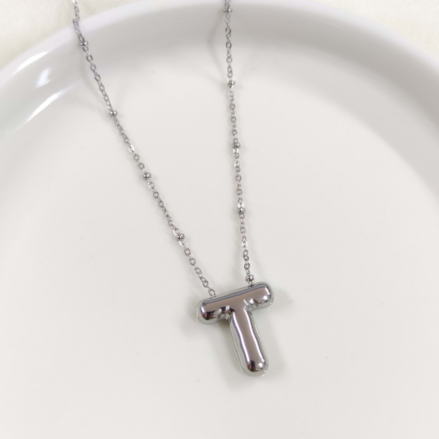 ÇELİK BOMBELİ BEYAZ HARF KOLYE - T HARFİ