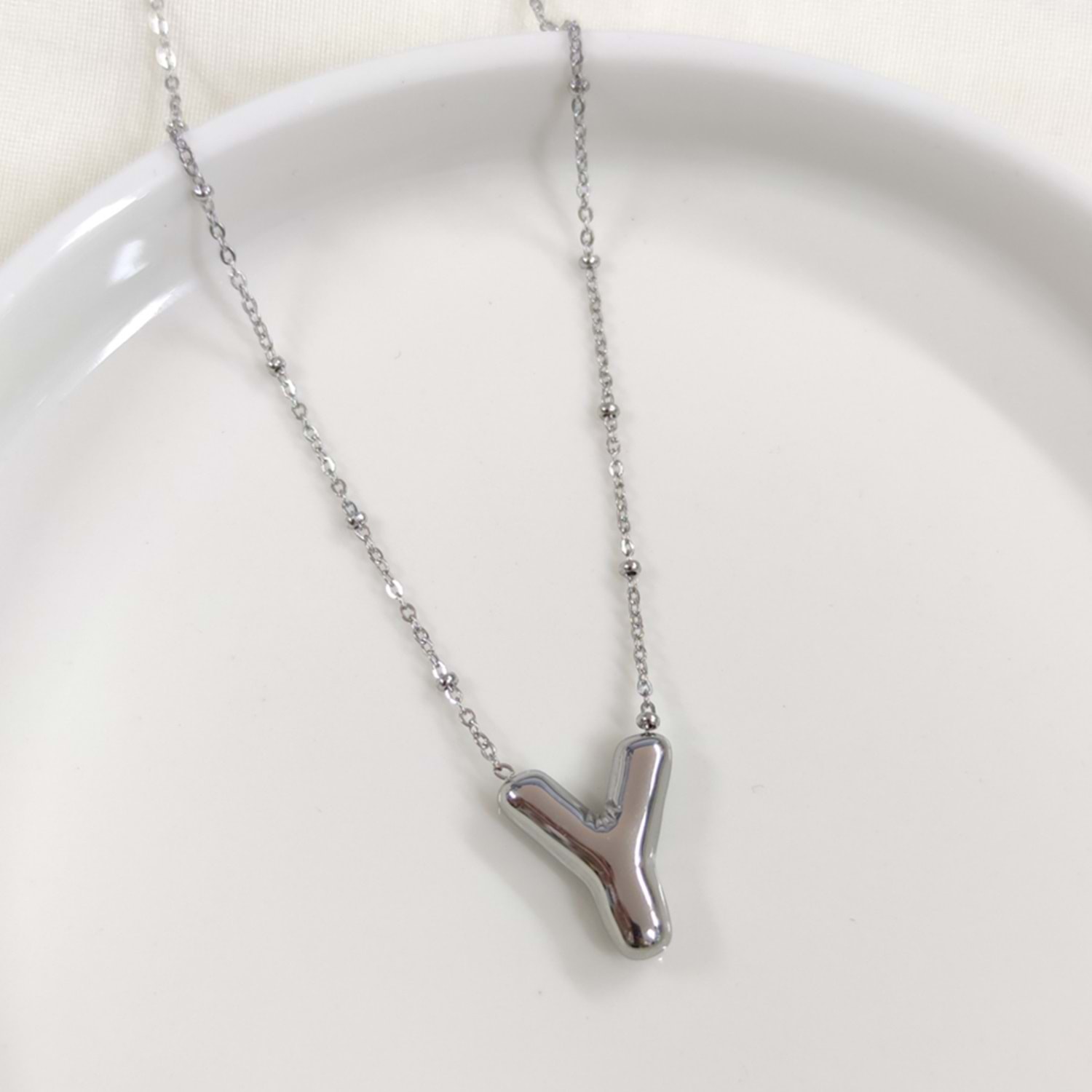 ÇELİK BOMBELİ BEYAZ HARF KOLYE - Y HARFİ