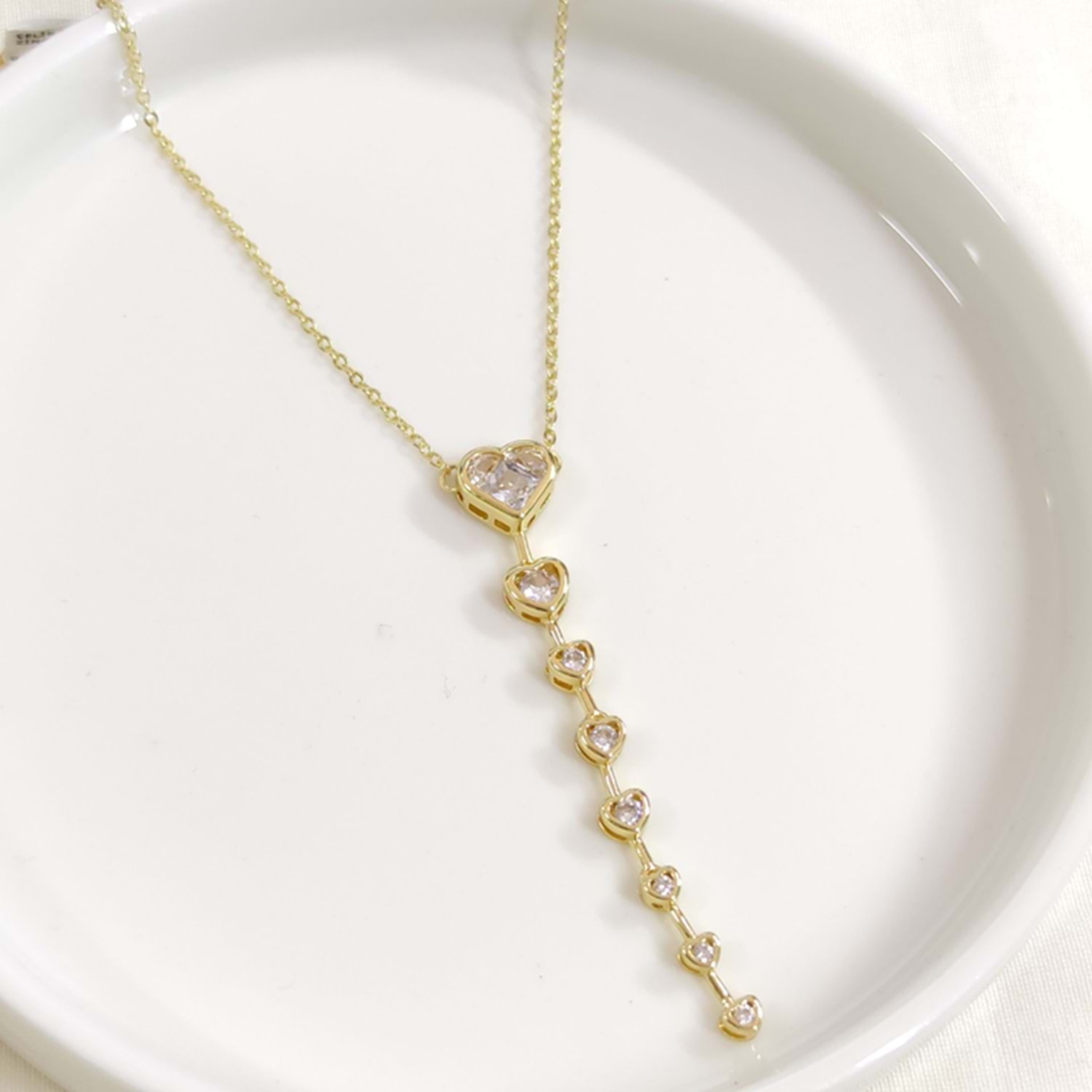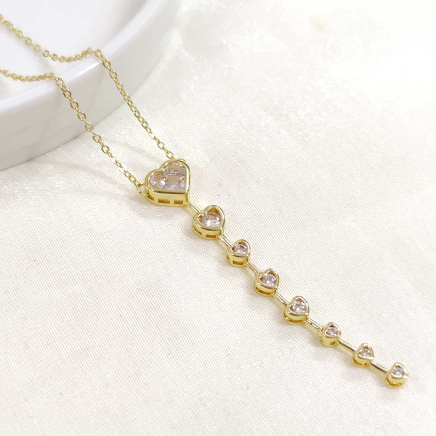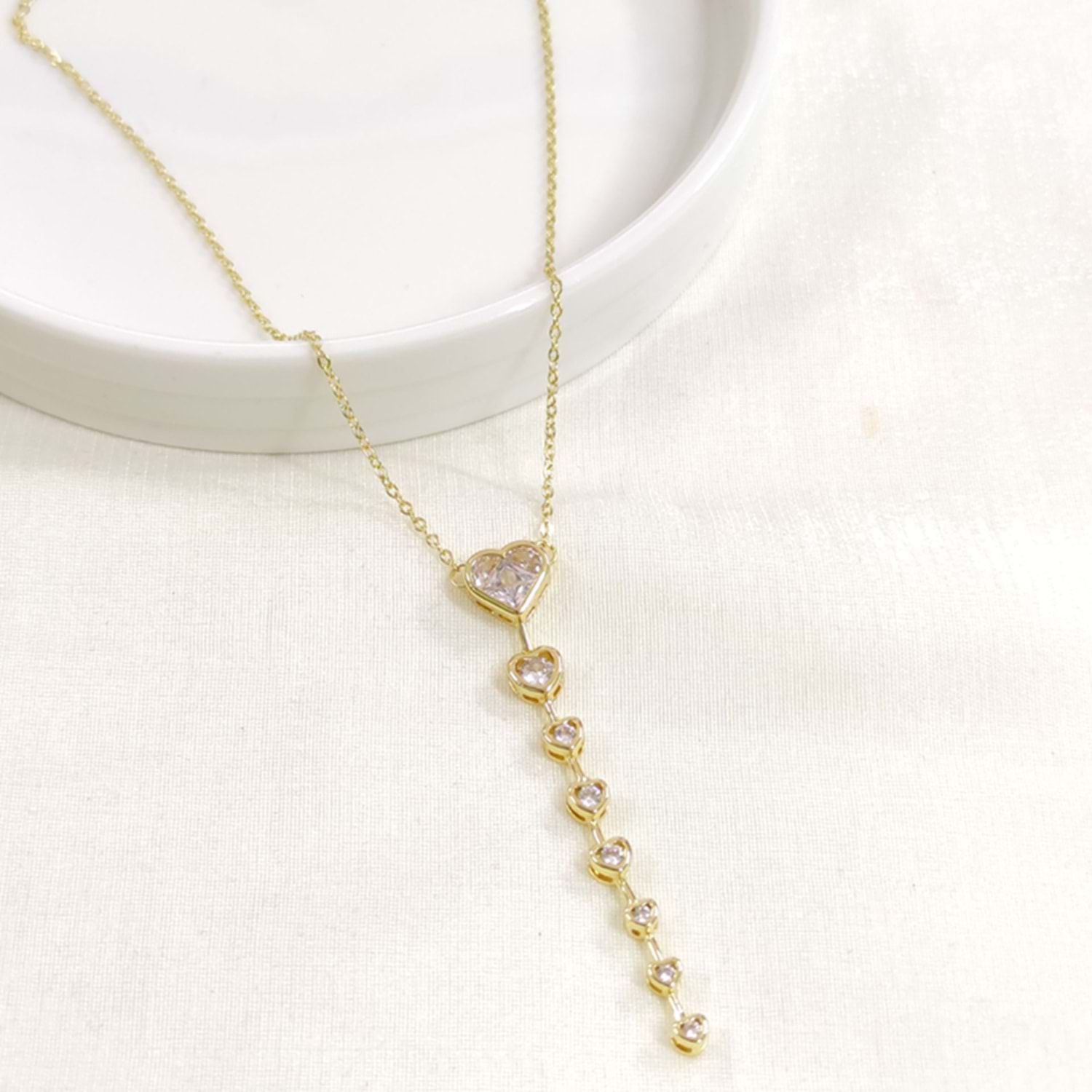 ÇELİK KALP TAŞLI Y KOLYE ZİNCİR GOLD 40+5 CM