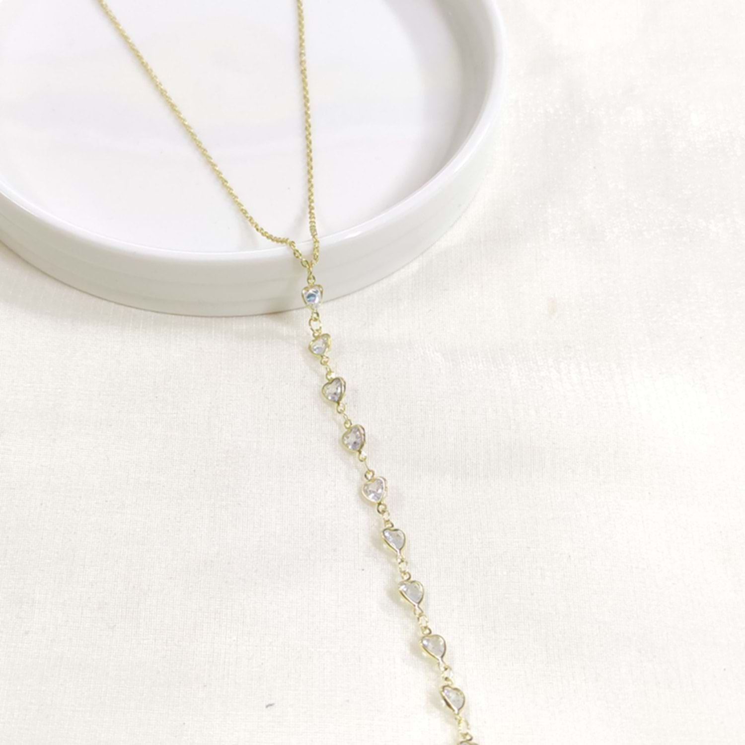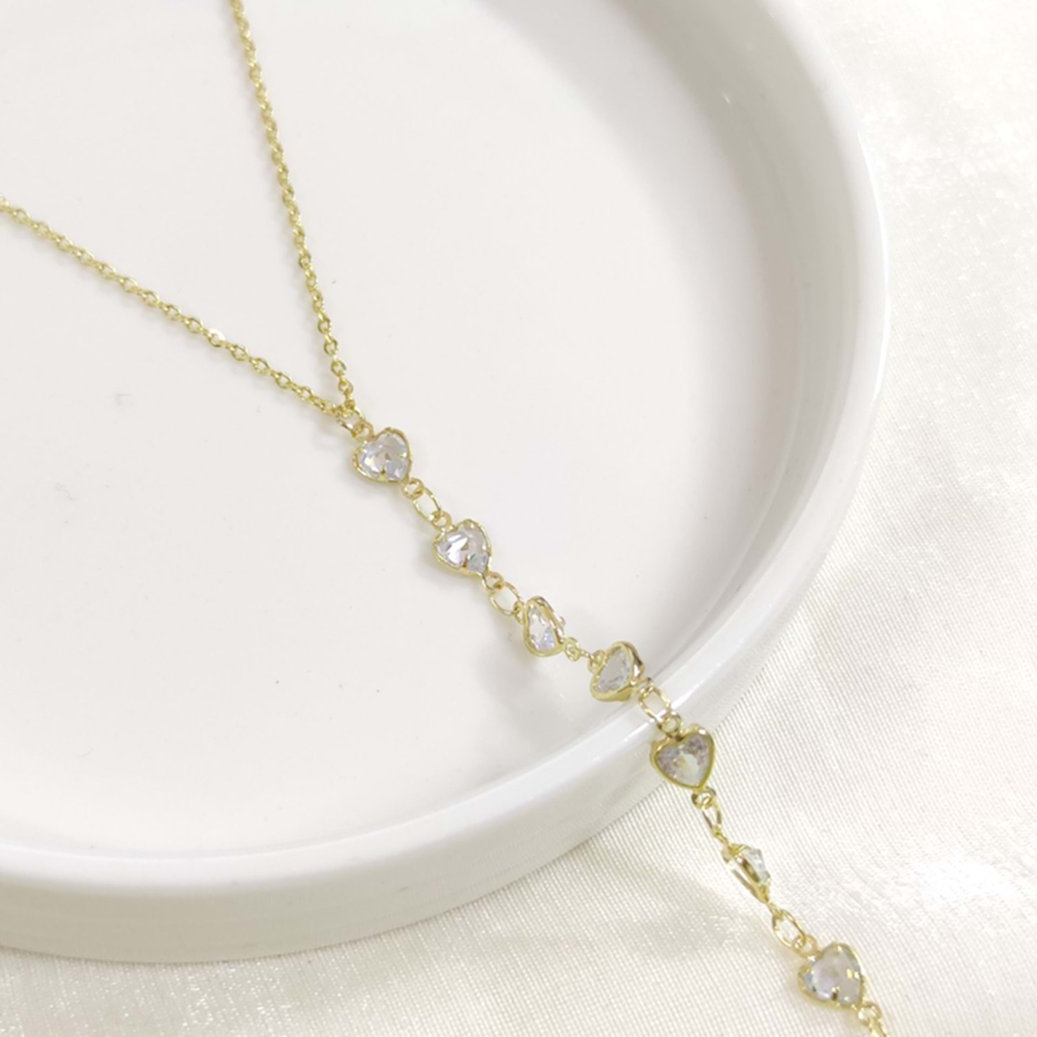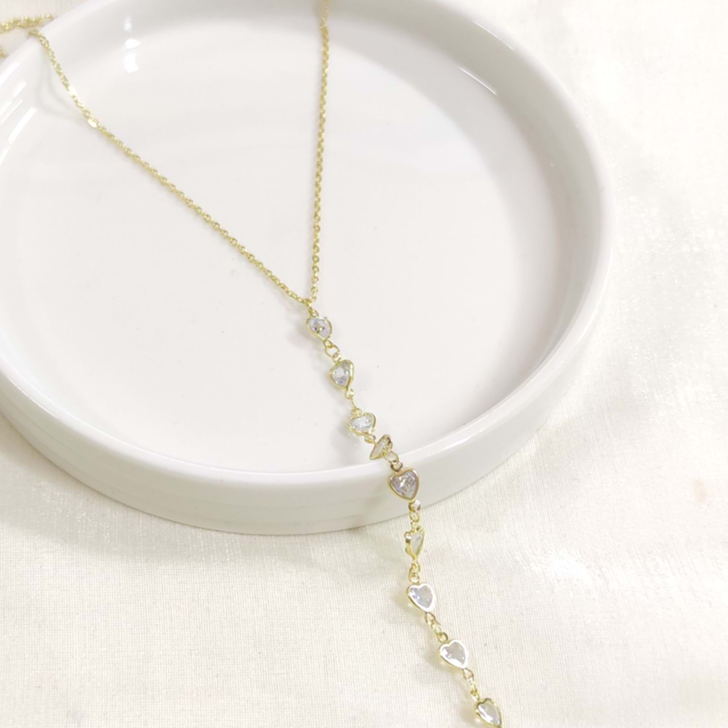 ÇELİK KALP TAŞLI Y KOLYE ZİNCİR GOLD 40+5 CM