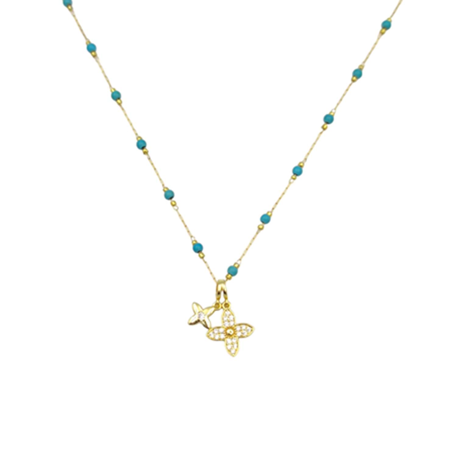 ÇELİK MAVİ TOP DETAY YONCA ÇİÇEK KOLYE