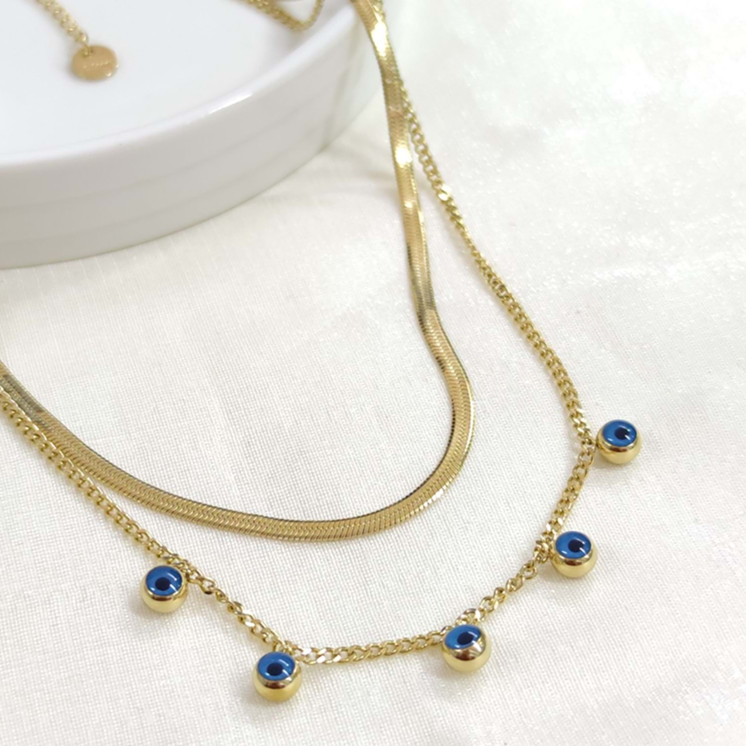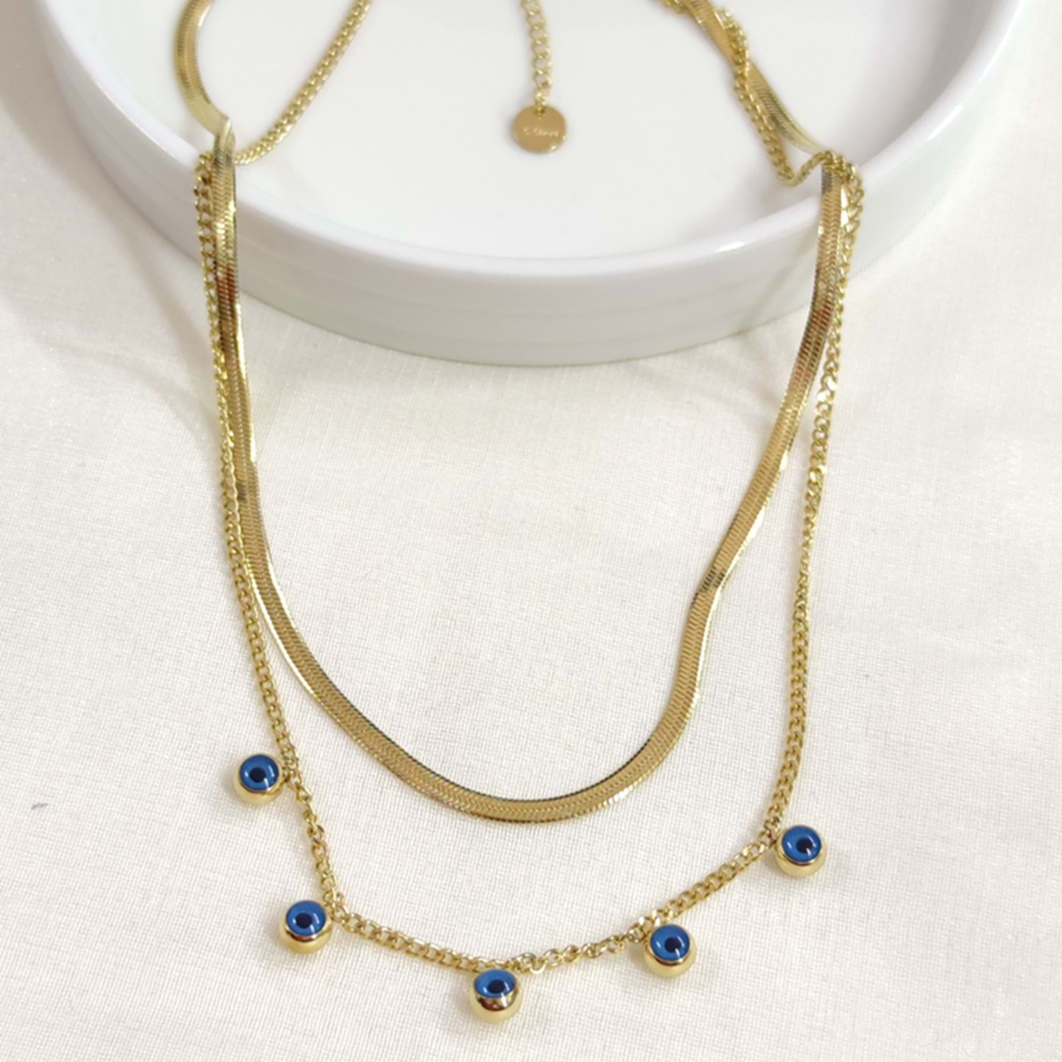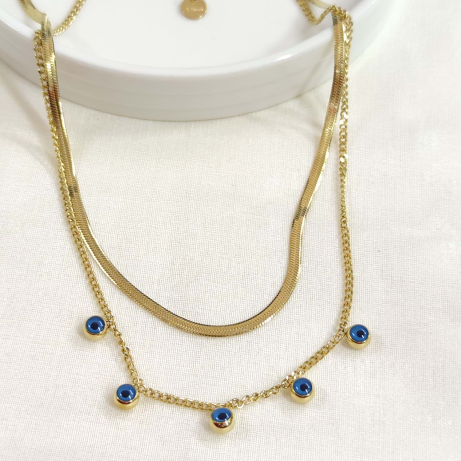 ÇELİK NAZAR BONCUKLU YASSI KOMBİN İKİLİ KOLYE