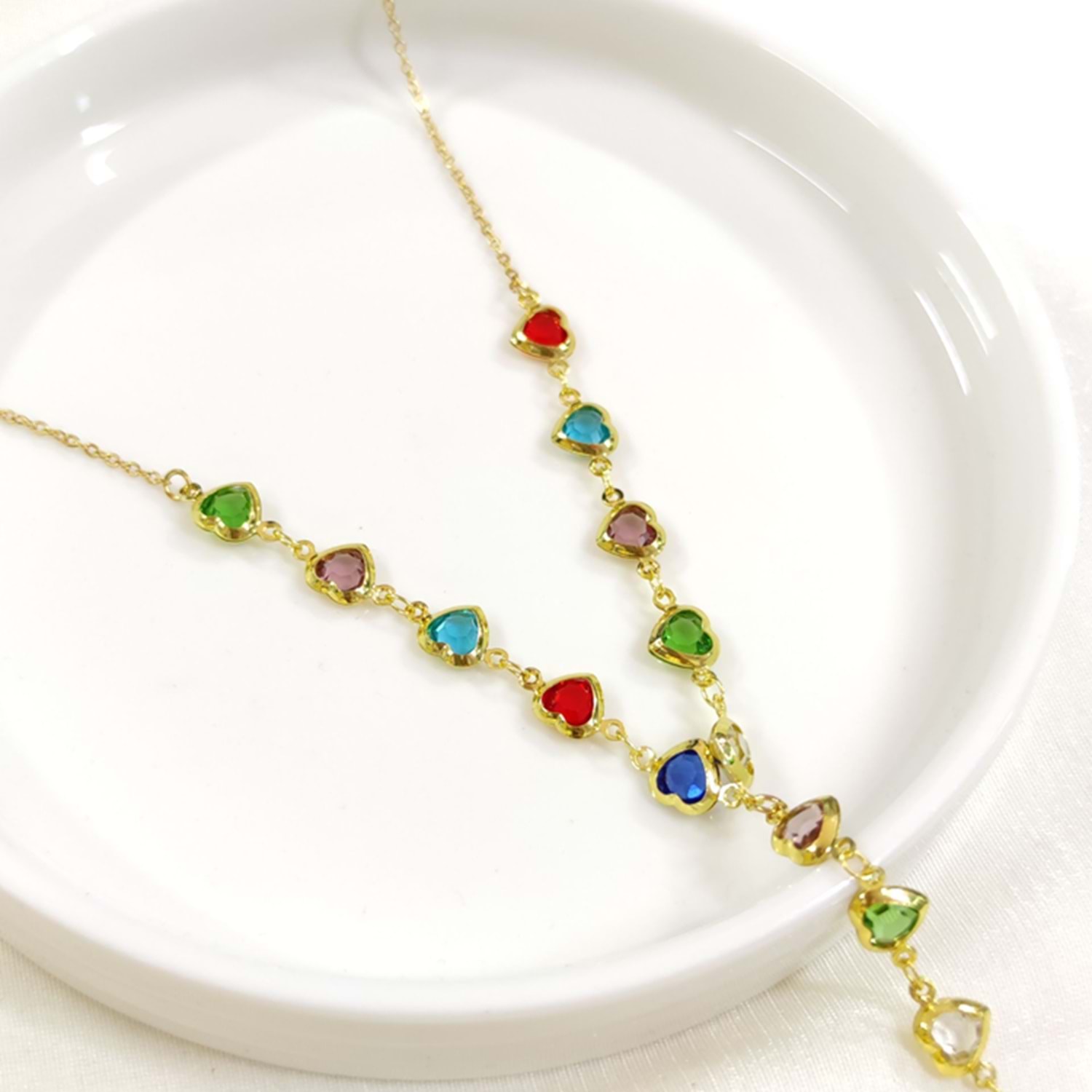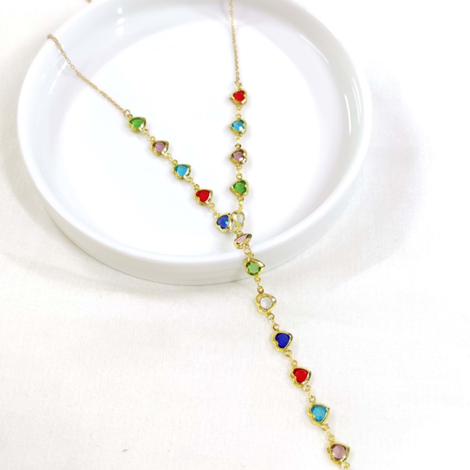ÇELİK RENKLİ KALP Y KOLYE GOLD 55+5 CM