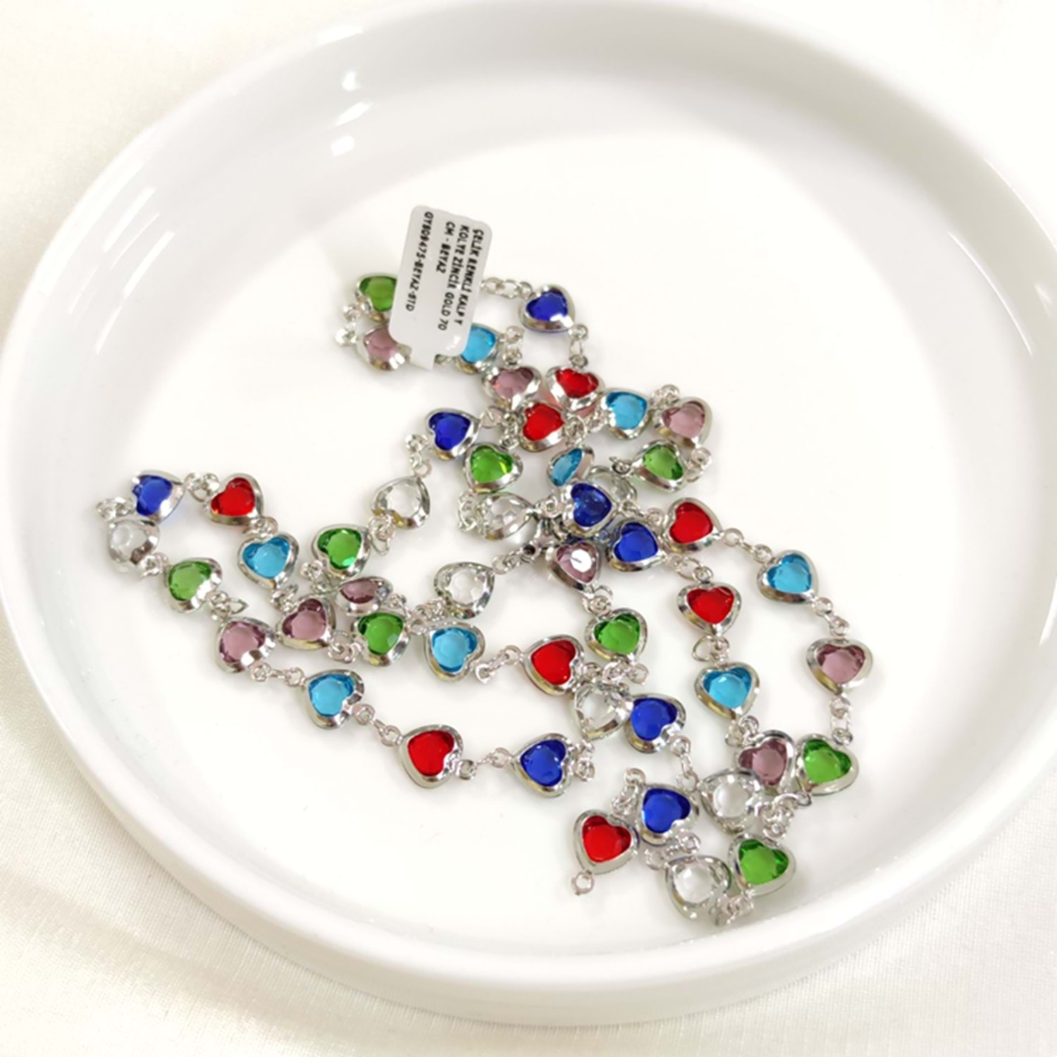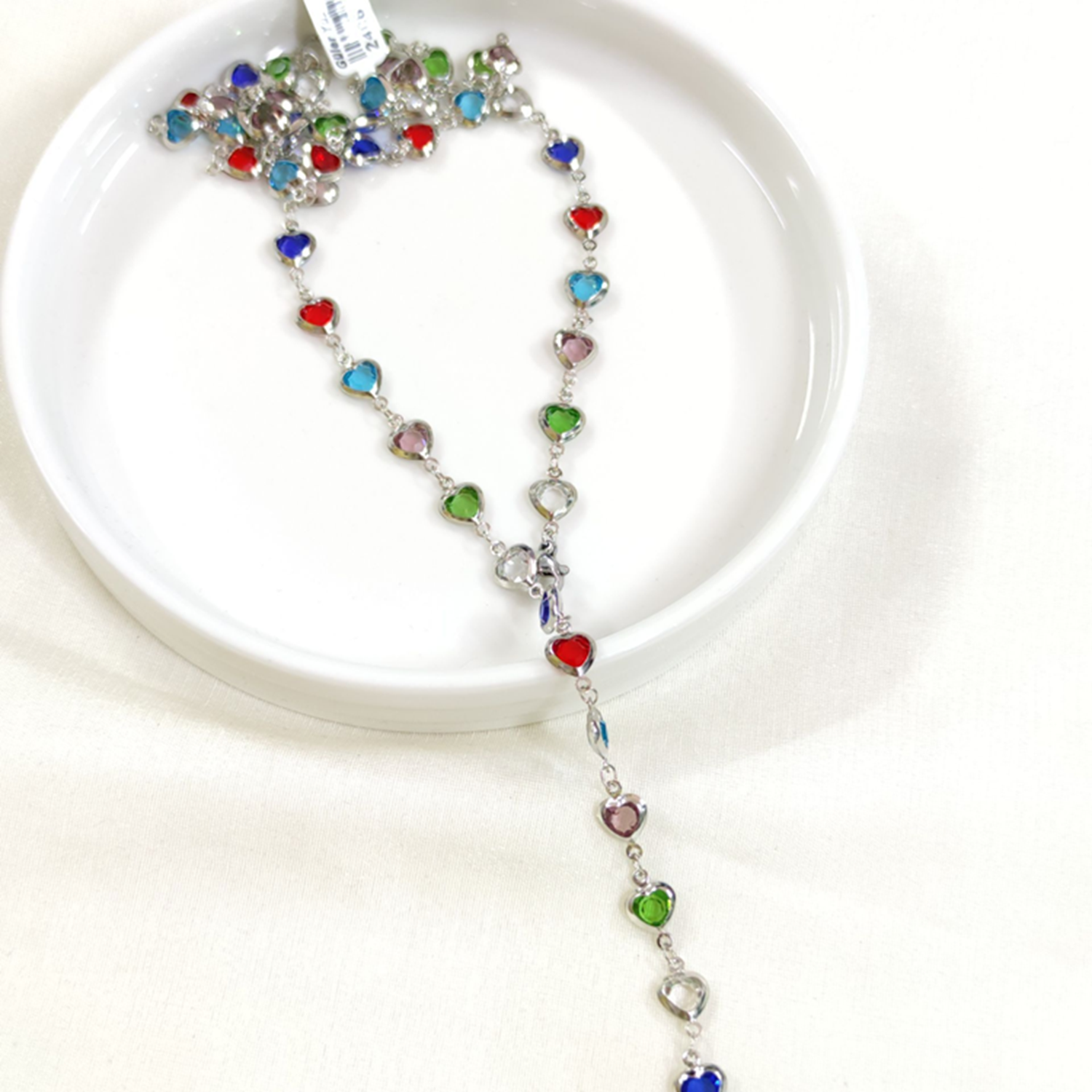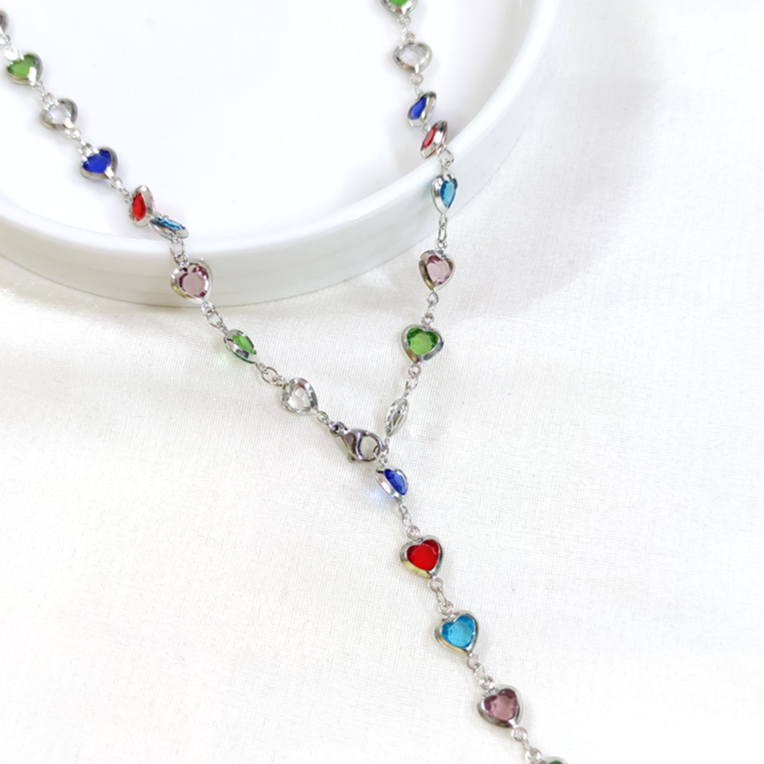 ÇELİK RENKLİ KALP Y KOLYE ZİNCİR GOLD 70 CM - BEYAZ