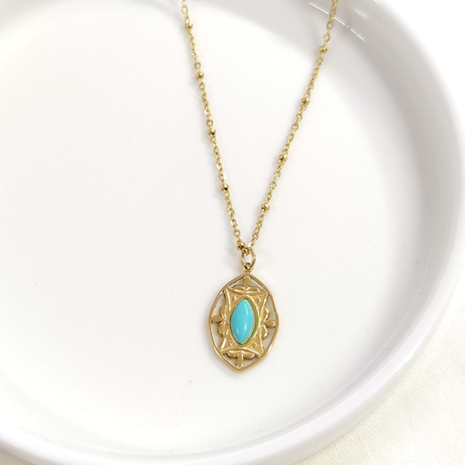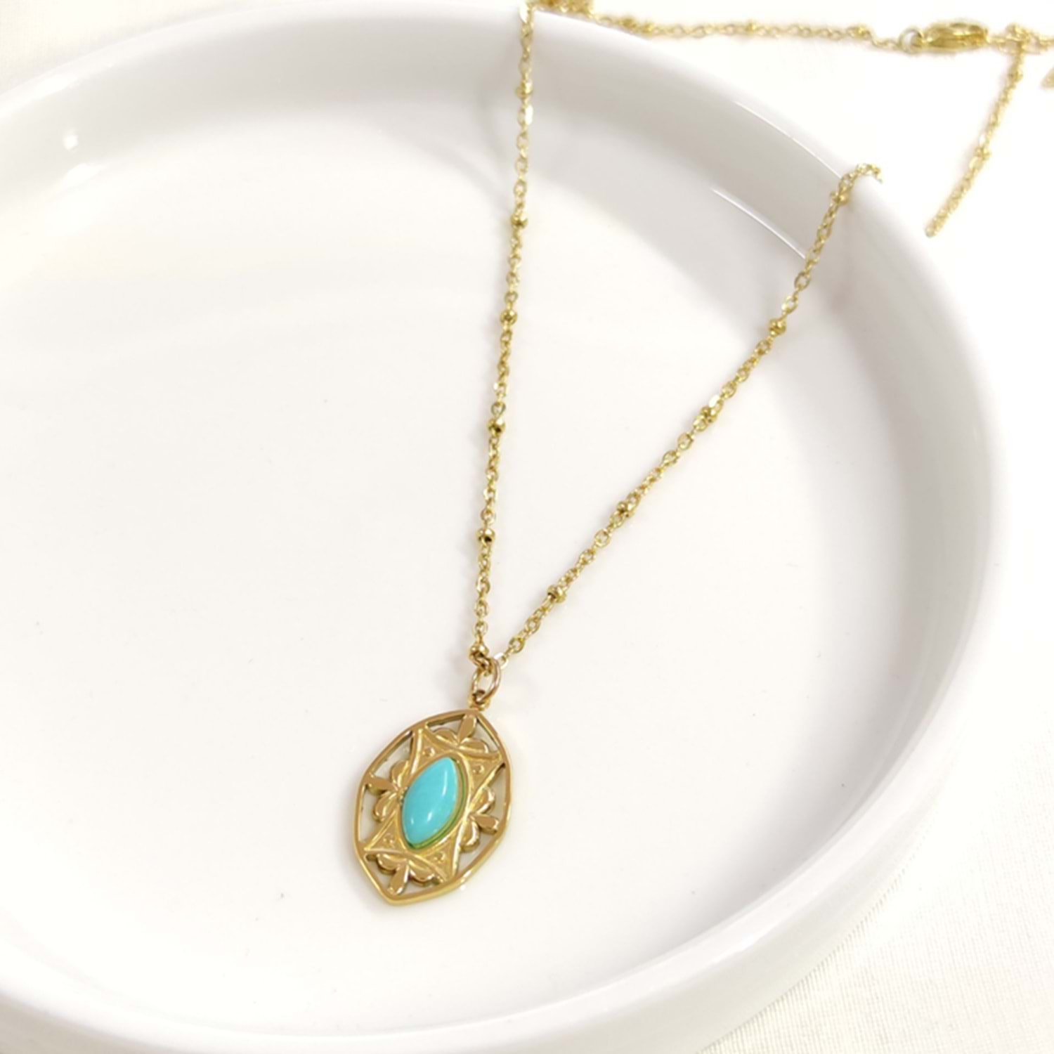 ÇELİK TURKUAZ TAŞLI MEKİK KOLYE 40+5 CM