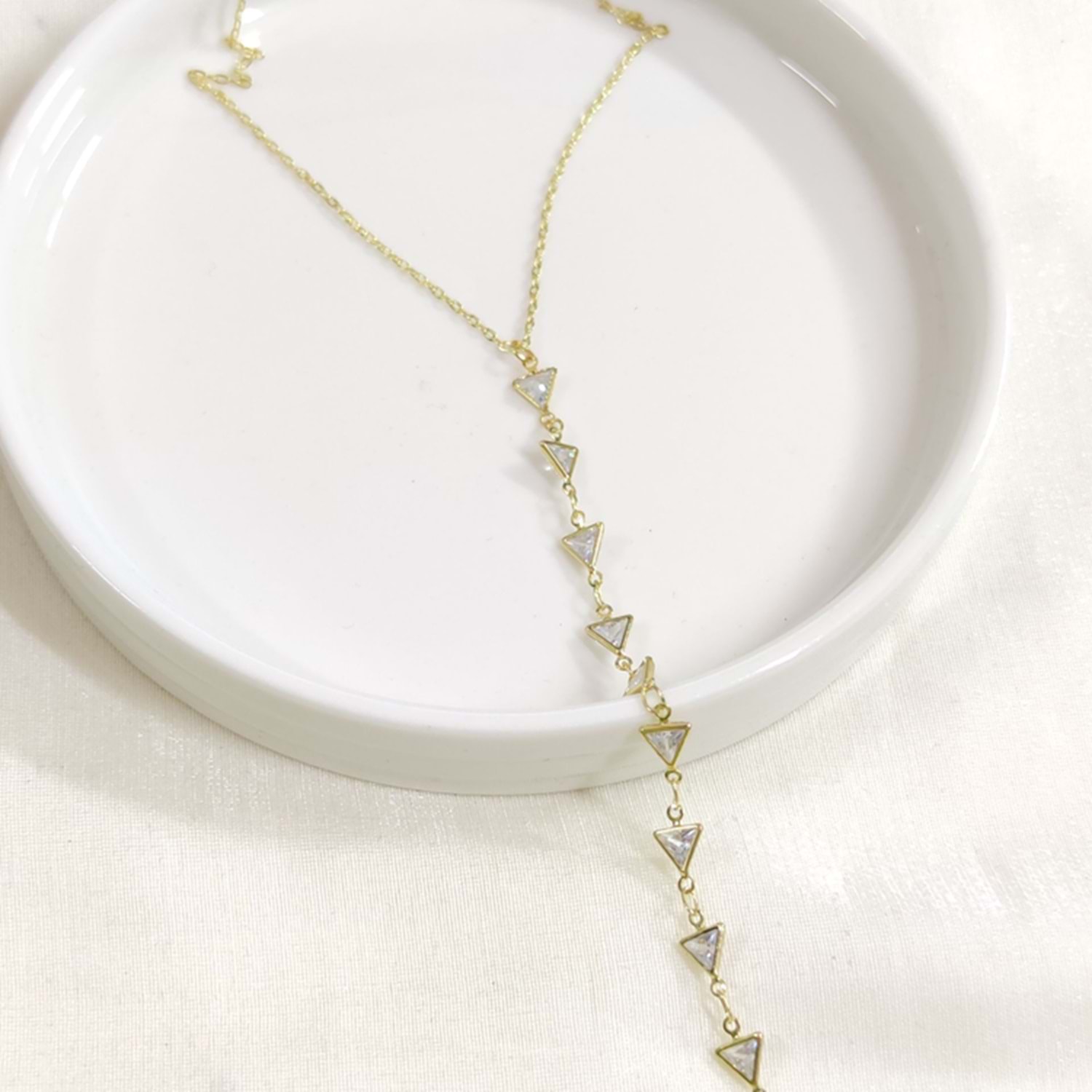 ÇELİK ÜÇGEN TAŞLI Y KOLYE ZİNCİR GOLD 40+5 CM