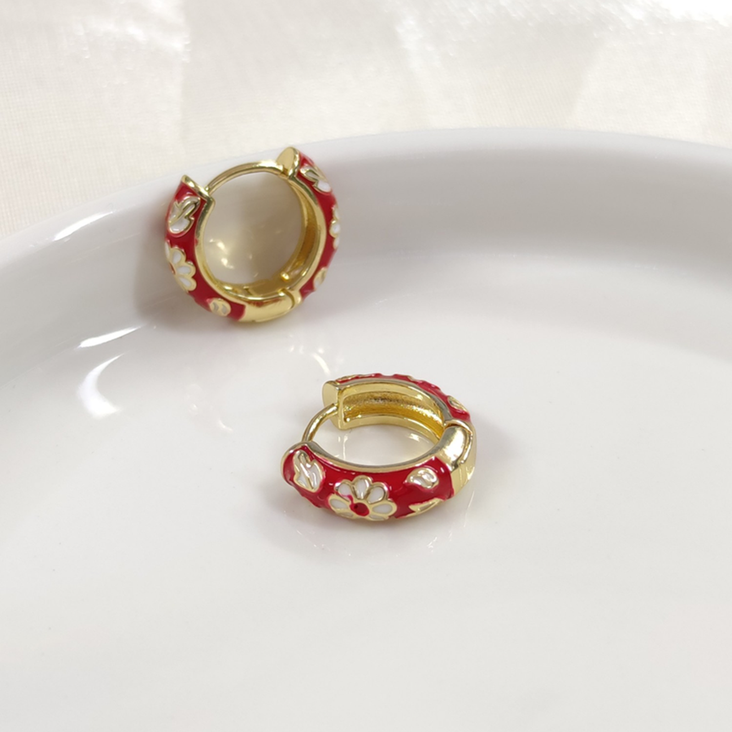 12 MM MİNELİ ÇİÇEKLİ ÇELİK HALKA KÜPE - KIRMIZI