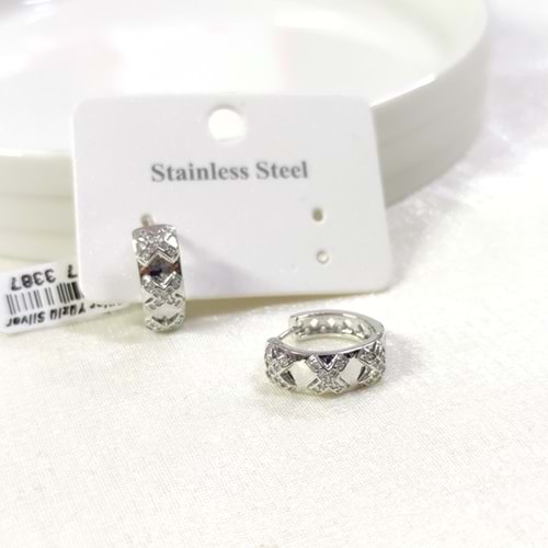 ÇELİK SEDEF DETAY YONCA HALKA KÜPE