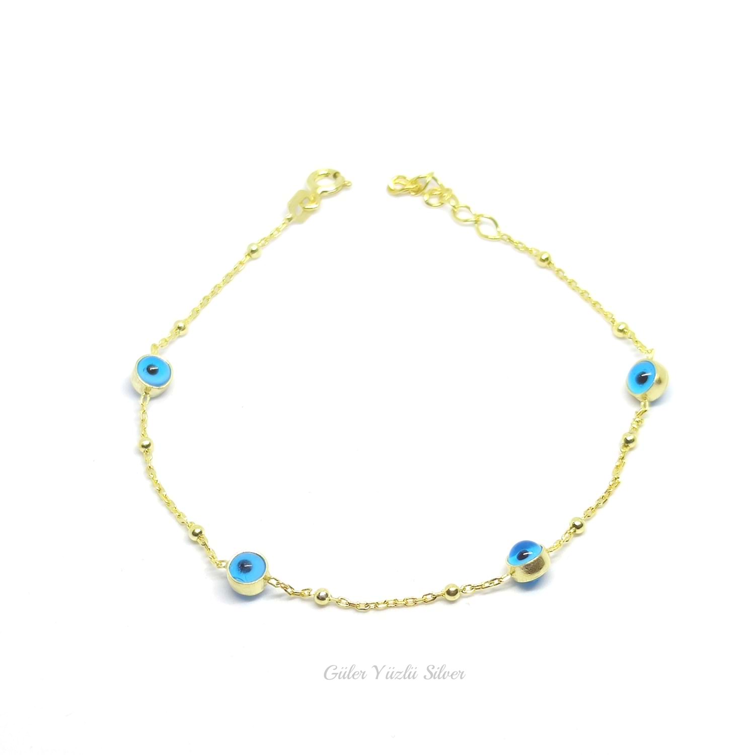 CAM GÖZ NAZAR TOP GÜMÜŞ BİLEKLİK - ALTIN KAPLAMA (SARI)