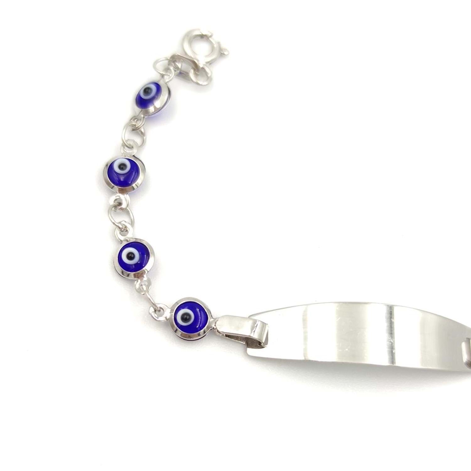 CAM NAZAR BONCUK İSİM YAZILABİLEN GÜMÜŞ ÇOCUK BİLEKLİK - LACİVERT
