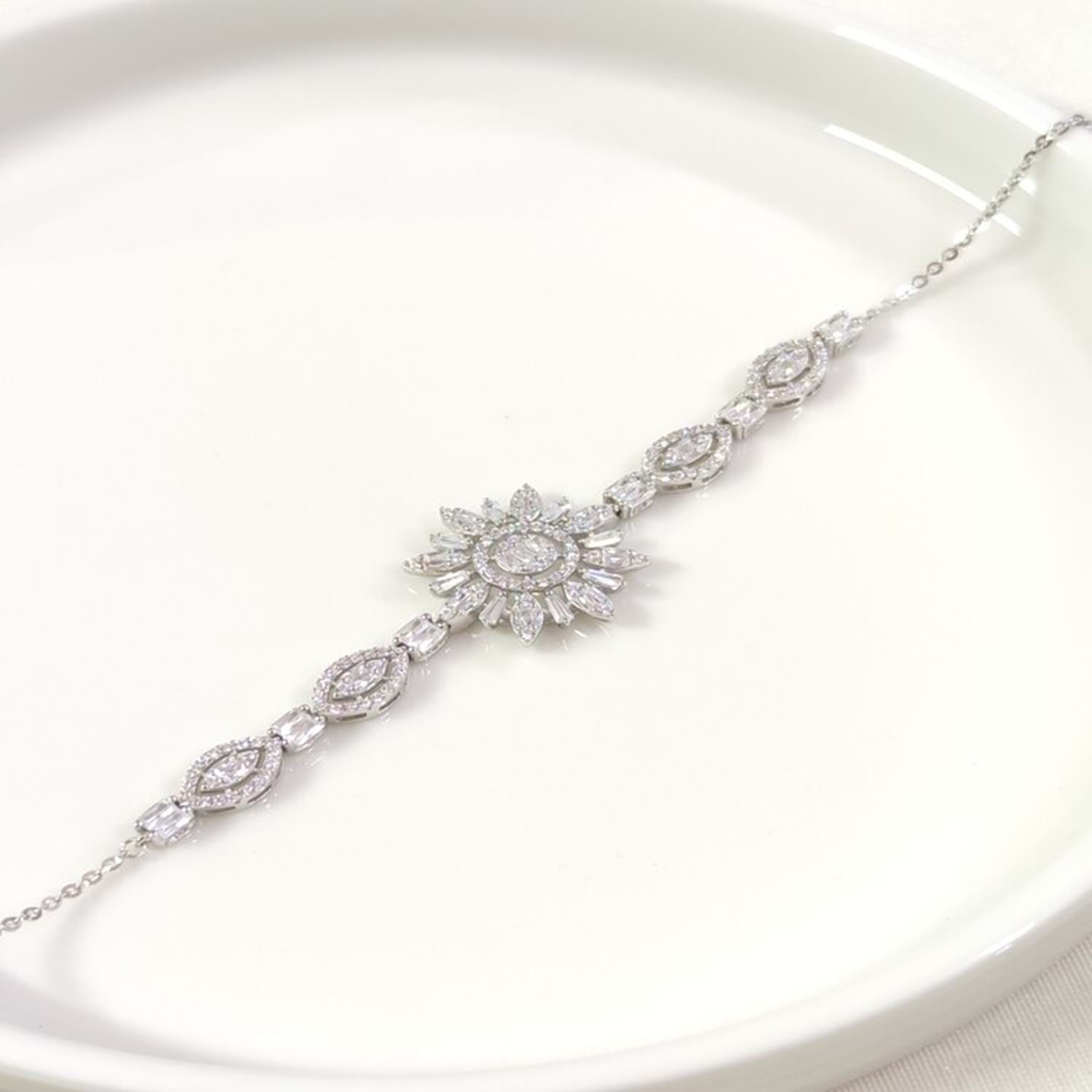 İTHAL GÜNEŞ DETAYLI TAŞLI GÜMÜŞ BİLEKLİK
