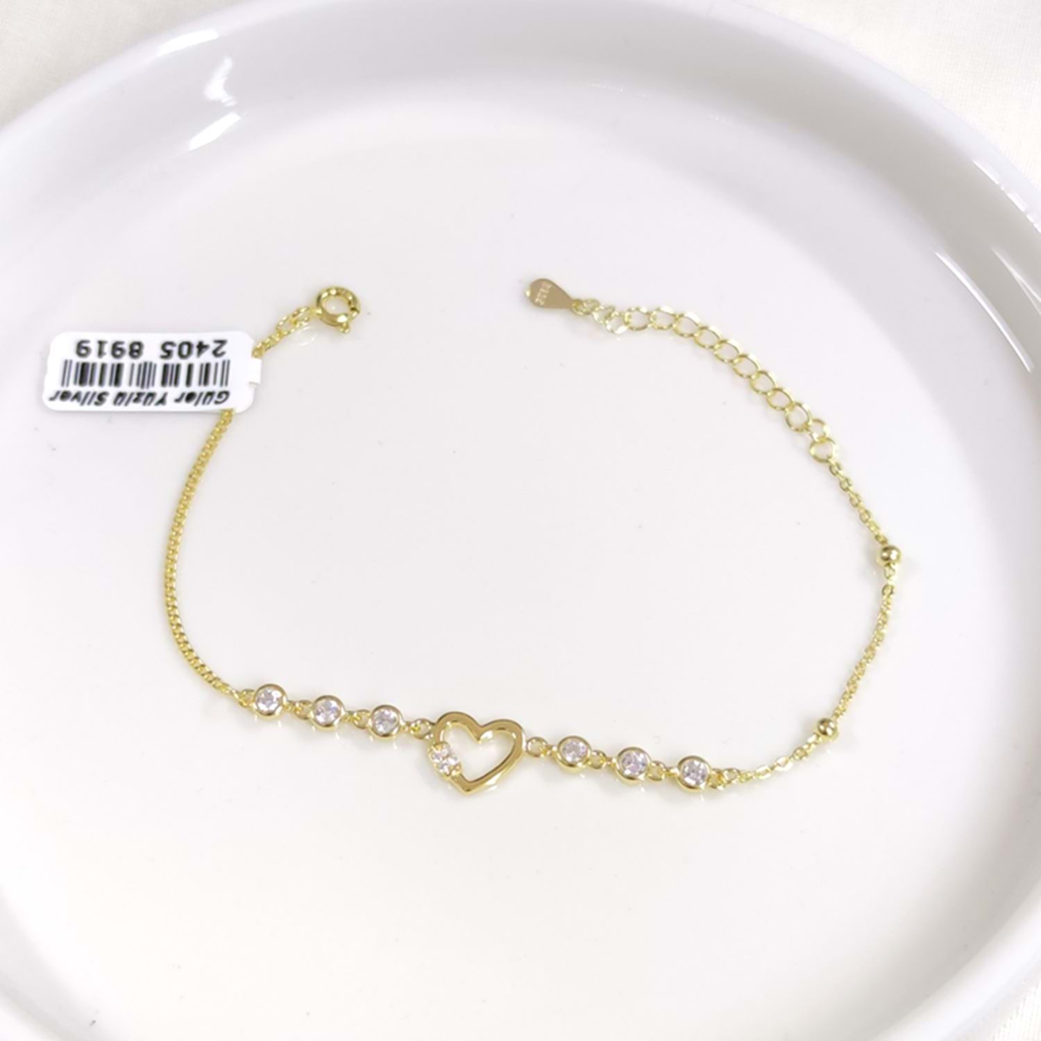 İTHAL TAŞLI KALP GÜMÜŞ BİLEKLİK 16+3 CM