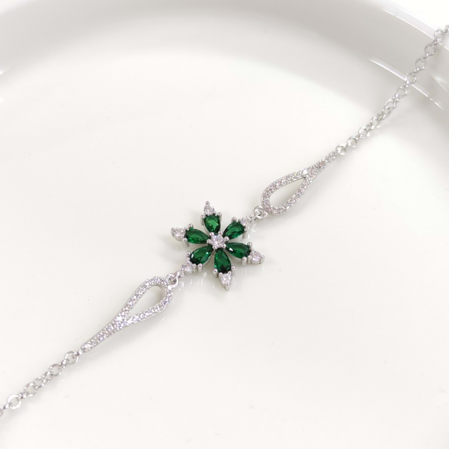 YEŞİL TAŞLI LOTUS GÜMÜŞ BİLEKLİK - RODYUM BEYAZ