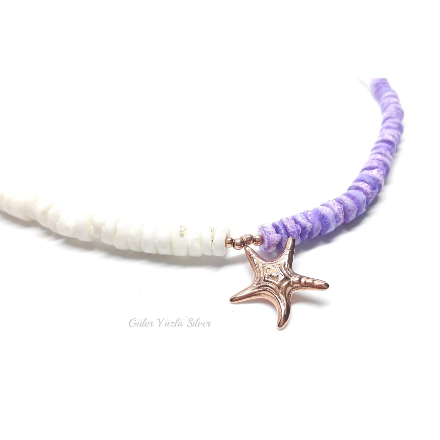 DENİZ YILDIZI MOR BONCUK GÜMÜŞ HALHAL
