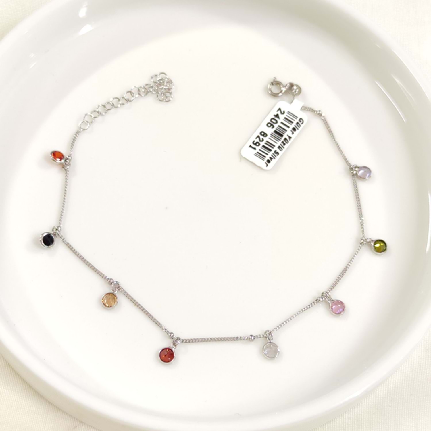 RENKLİ TAŞLI SALLANTILI GÜMÜŞ HALHAL