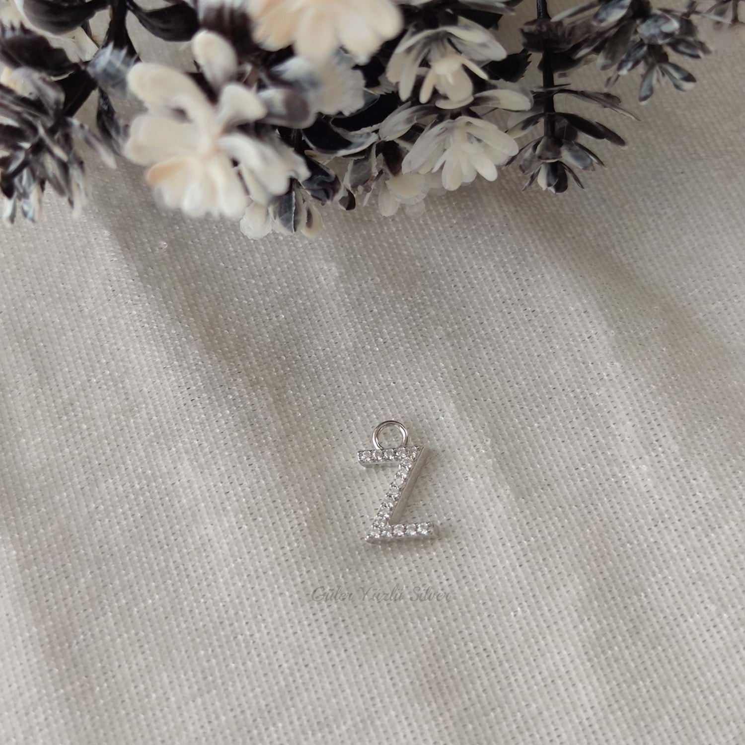 İTHAL TAŞLI HARF ( KOLYE KÜPE BİLEKLİK UCU) - RODYUM KAPLAMA (BEYAZ) - Z HARFİ