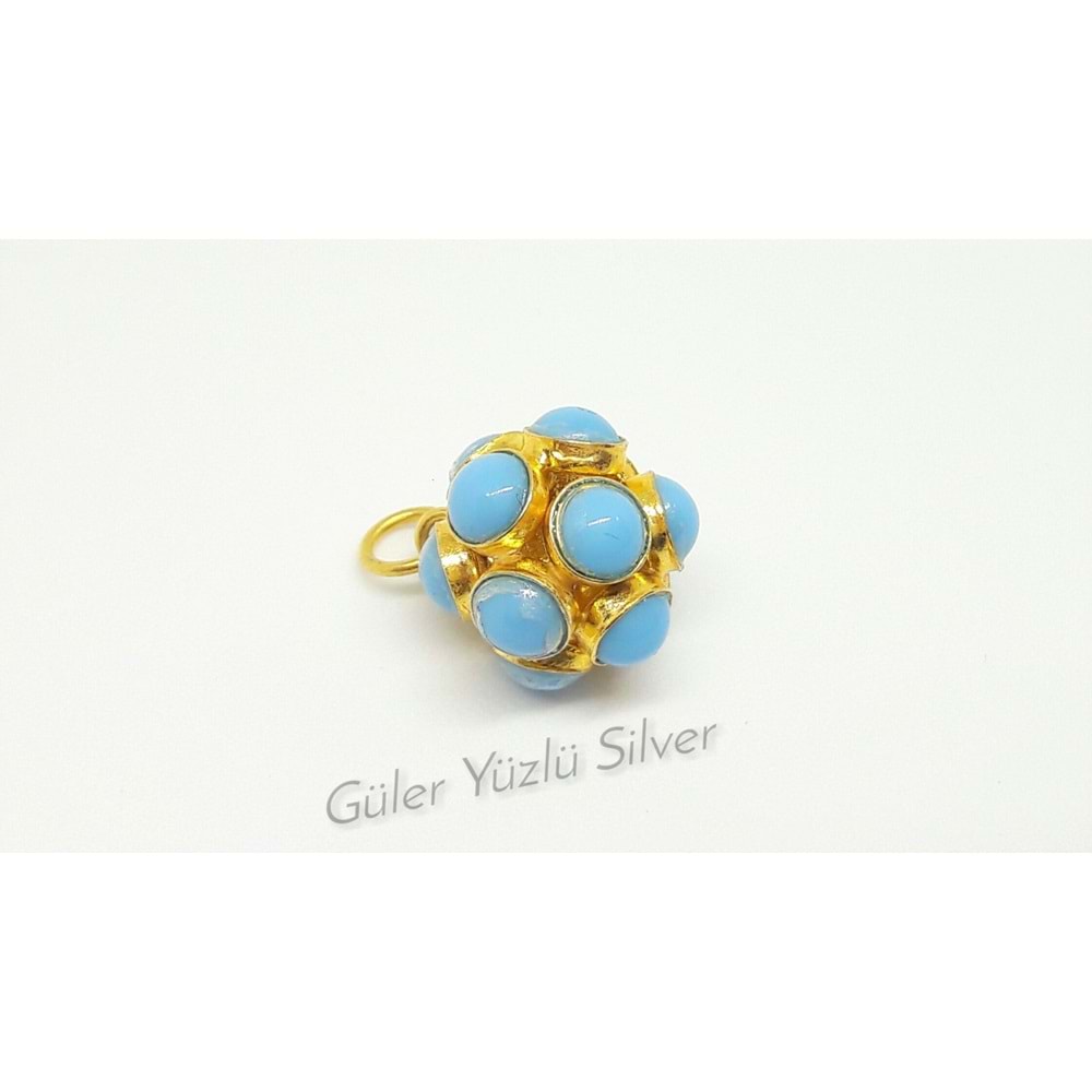 MAVİ BONCUK GÜMÜŞ KOLYE UCU - ALTIN KAPLAMA