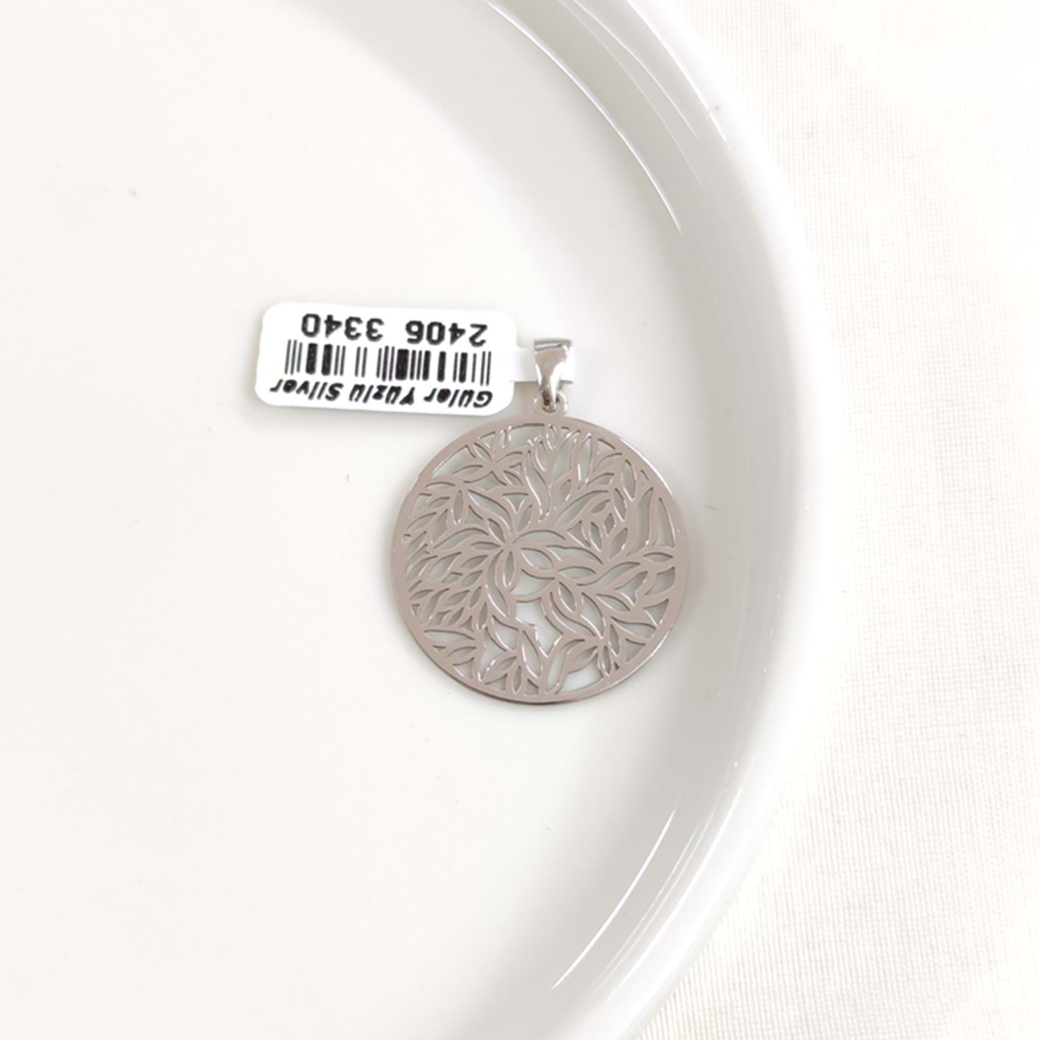 YAPRAK MOTİFLİ PLAKA GÜMÜŞ KOLYE UCU 25MM