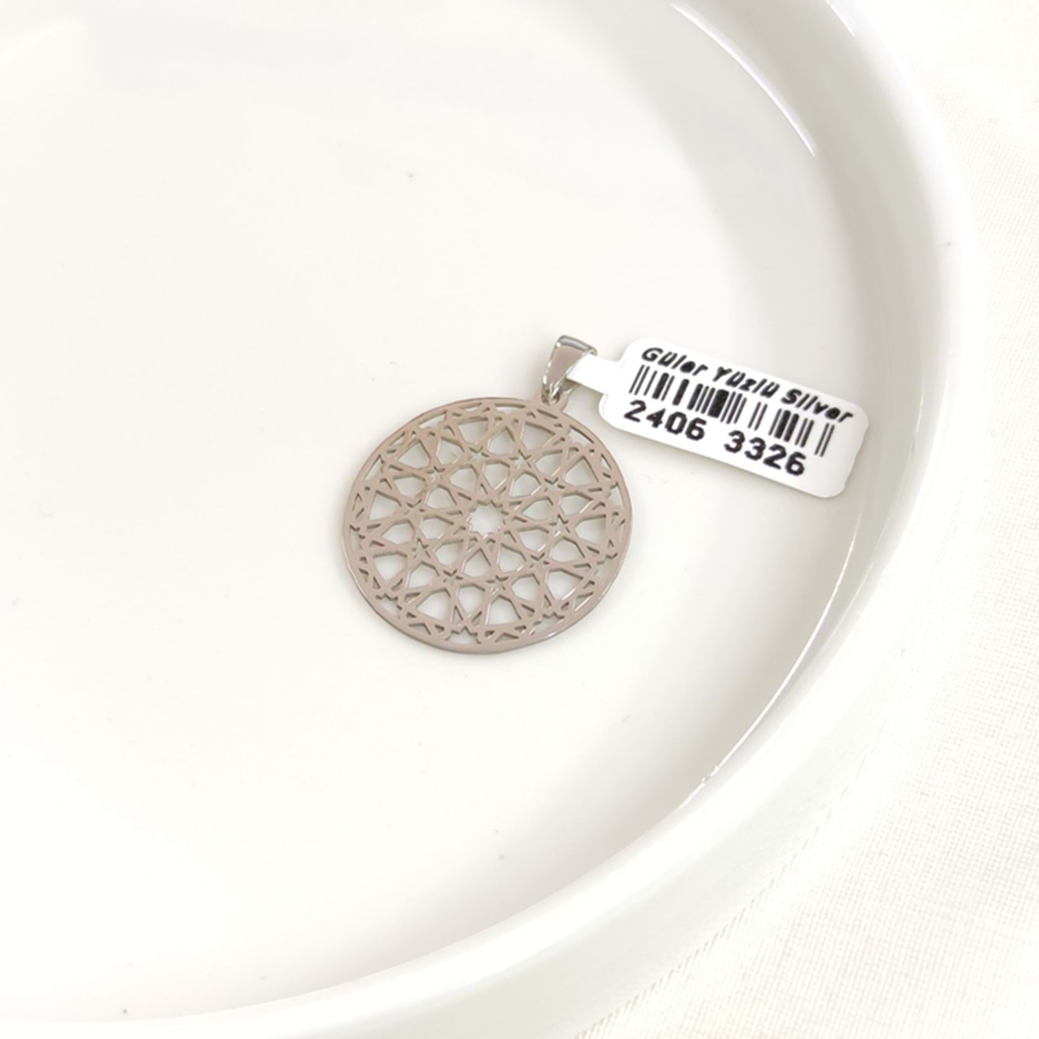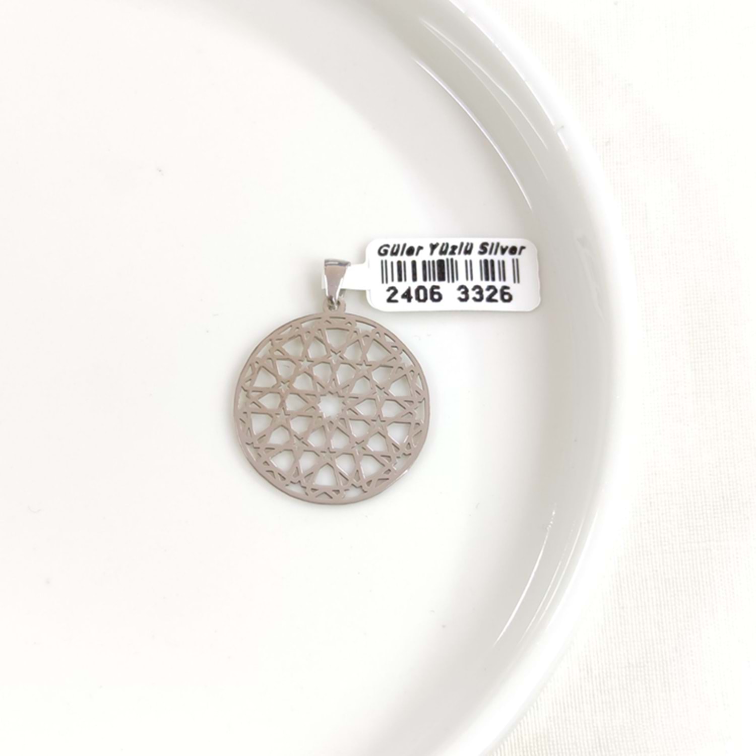 YILDIZ MOTİFLİ PLAKA GÜMÜŞ KOLYE UCU 25MM