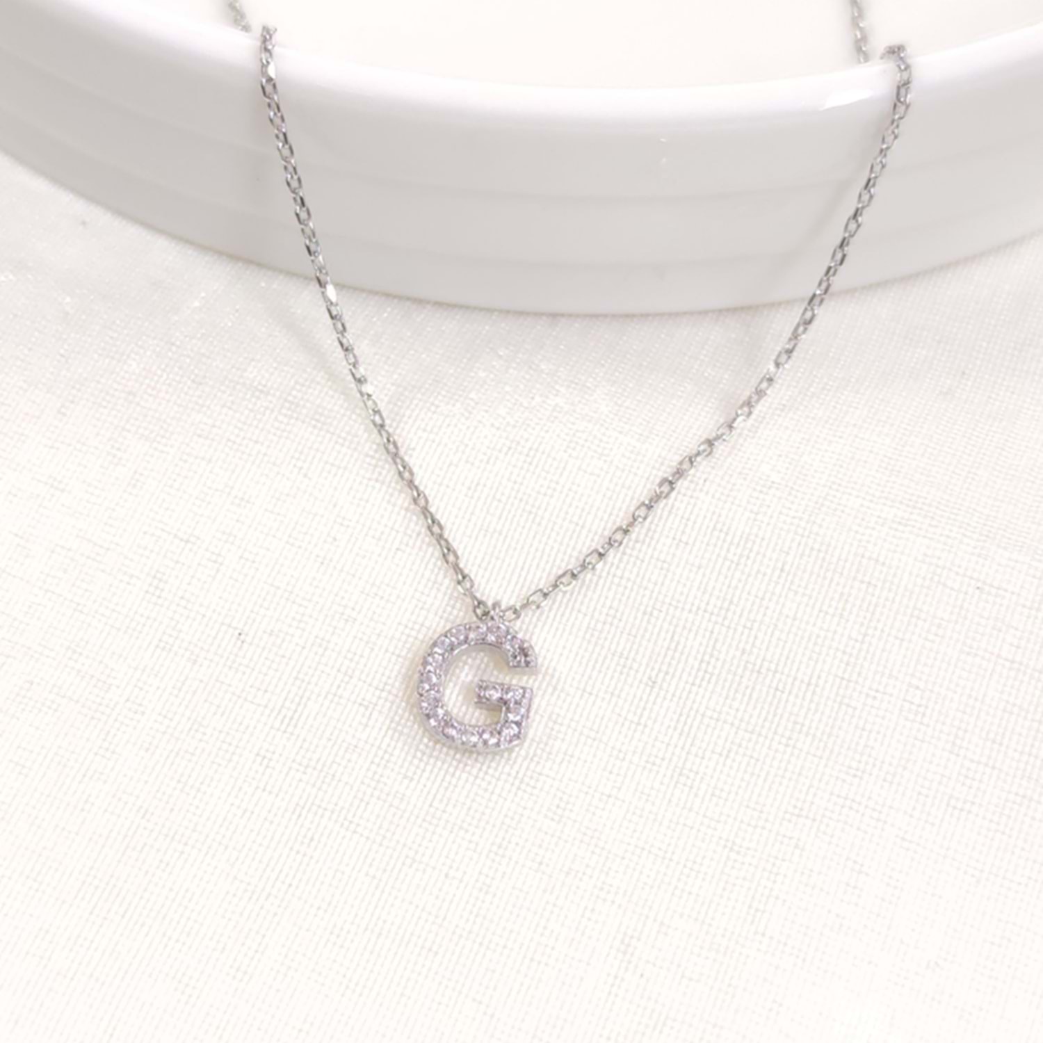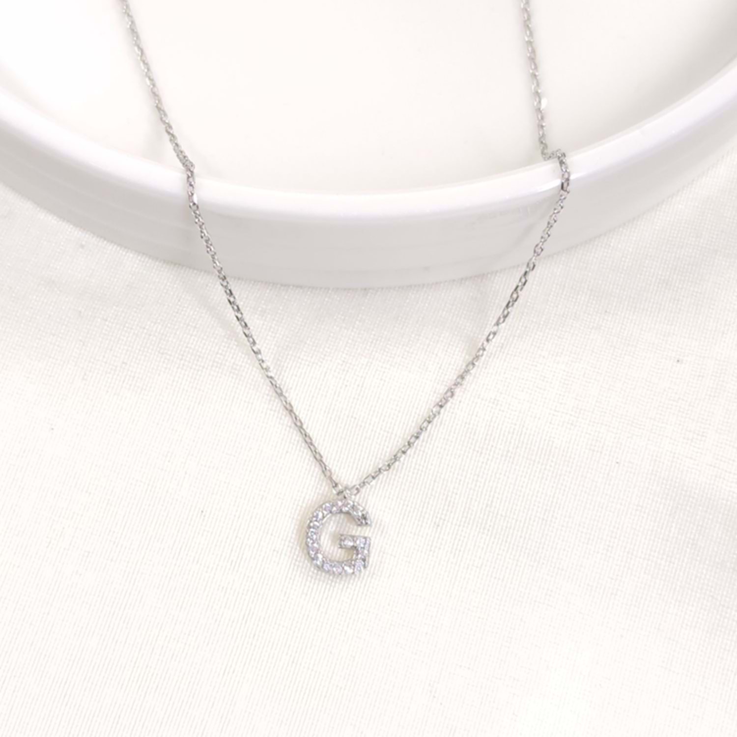 1 CM TAŞLI G HARF GÜMÜŞ KOLYE 40+5 CM - RODYUM BEYAZ