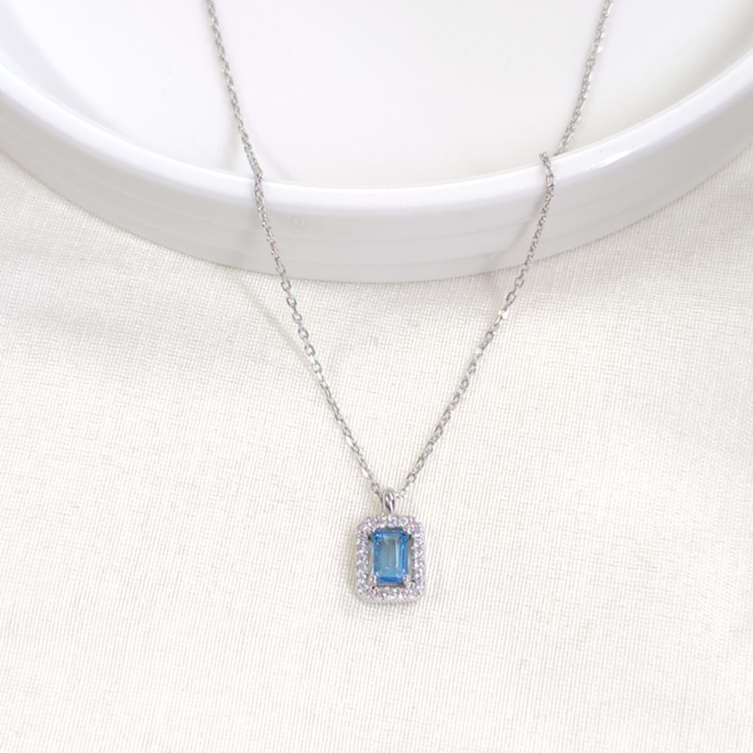 10 MM MAVİ BAGET GÜMÜŞ KOLYE 40+5 CM