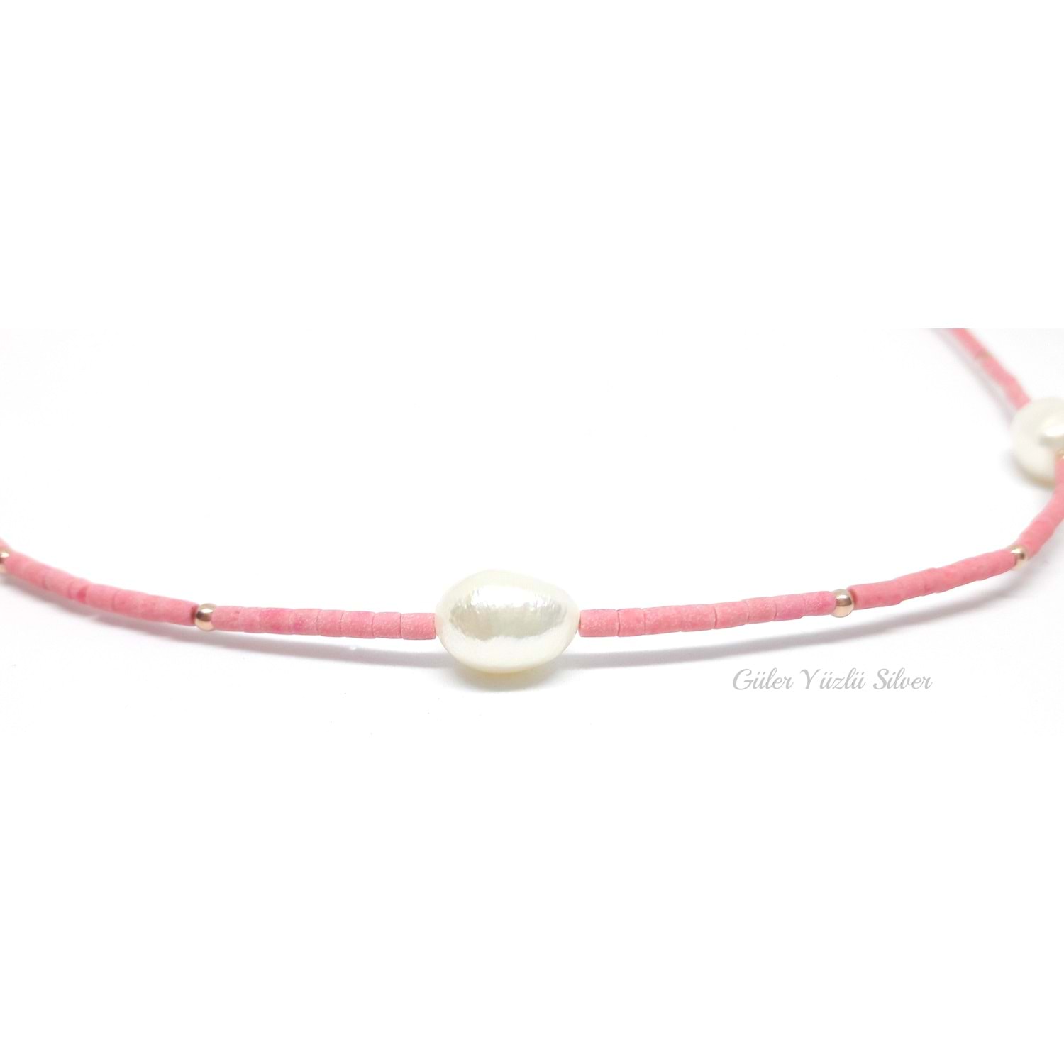 3 İNCİ DETAYLI PEMBE GÜMÜŞ KOLYE