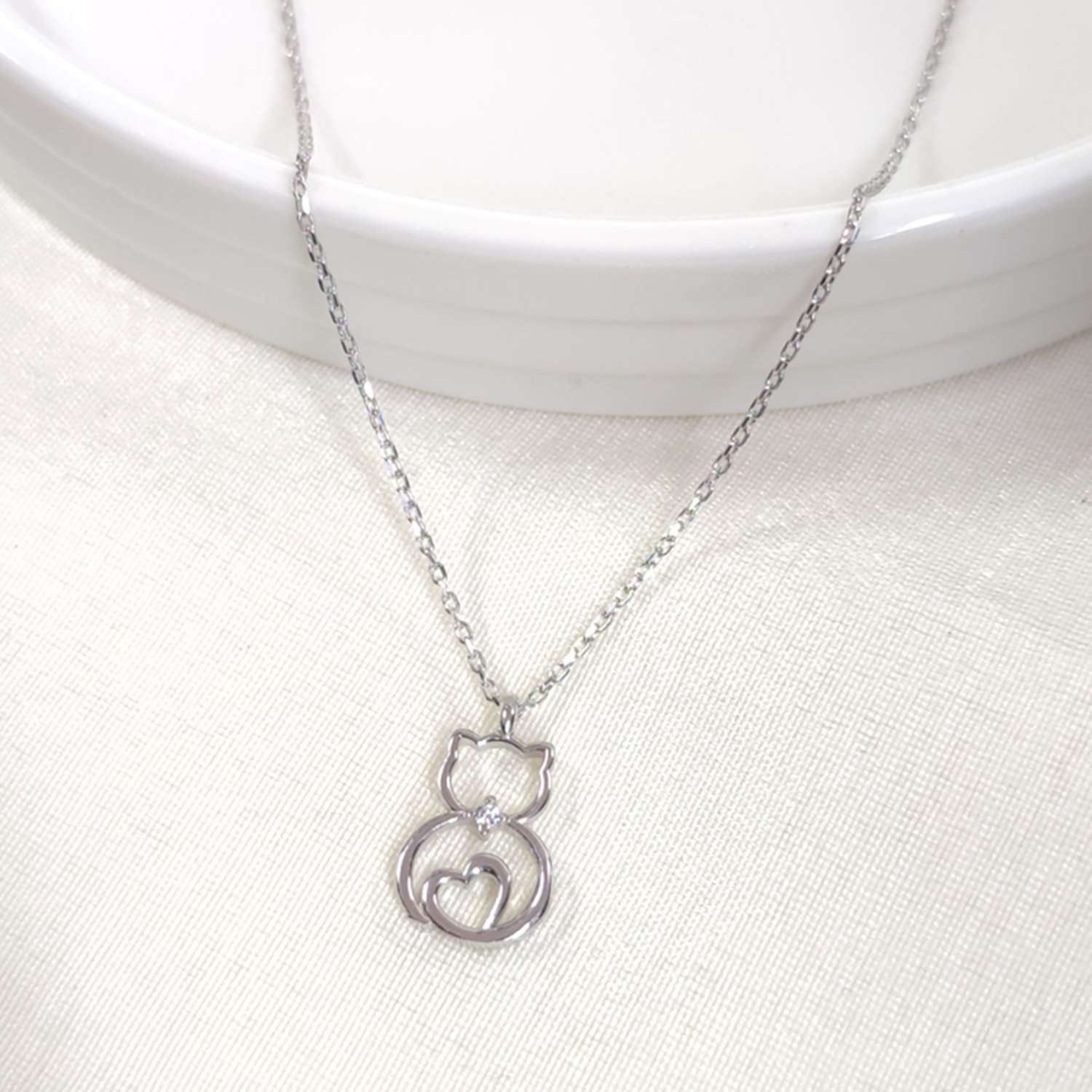 8X15 MM KALP DETAYLI KEDİ GÜMÜŞ KOLYE 40+5 CM
