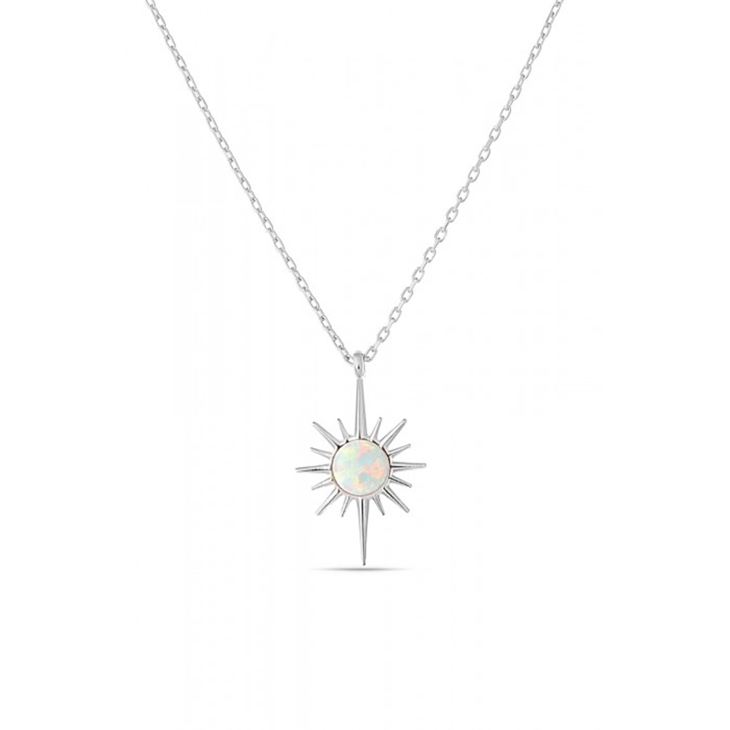 BEYAZ OPAL KUTUP YILDIZ GÜMÜŞ KOLYE