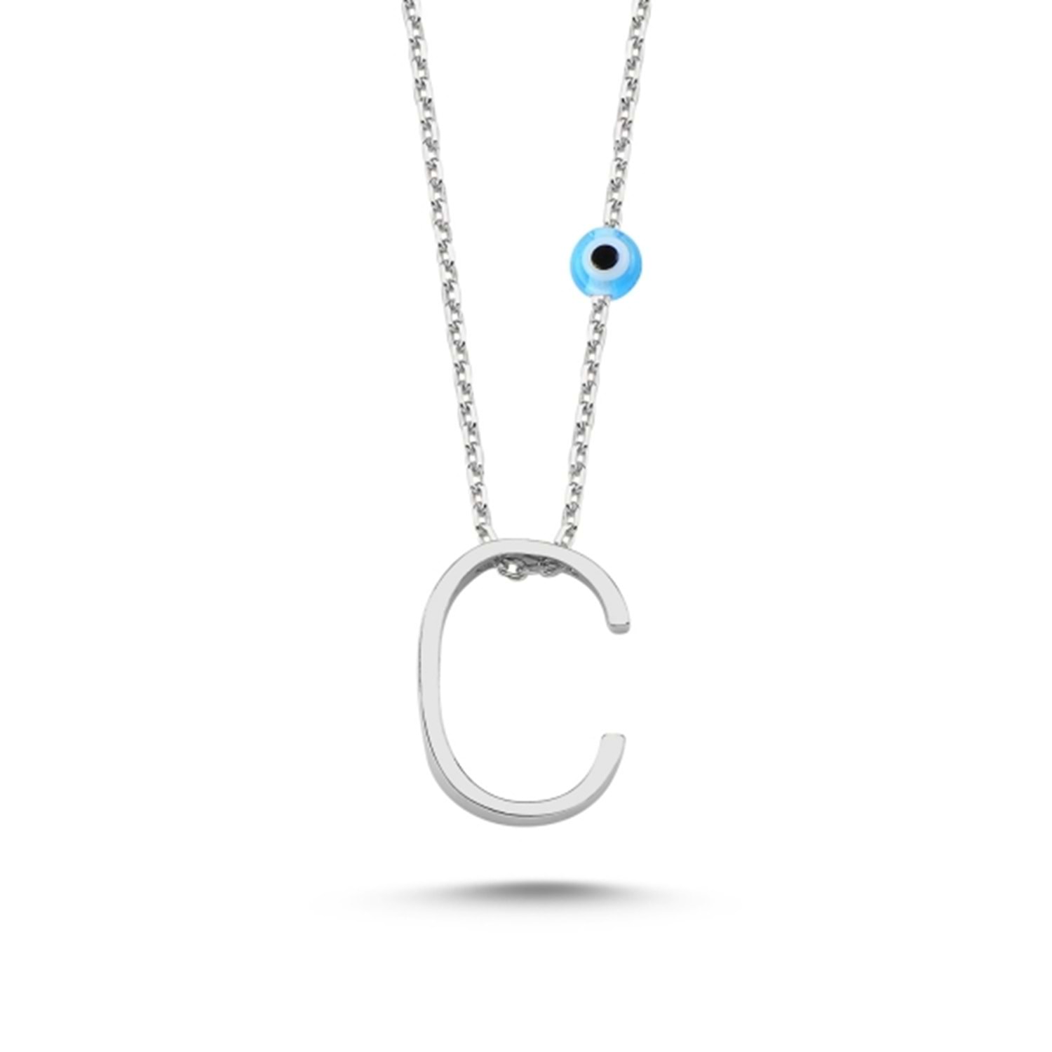 C HARF GÜMÜŞ KOLYE - RODYUM KAPLAMA (BEYAZ)