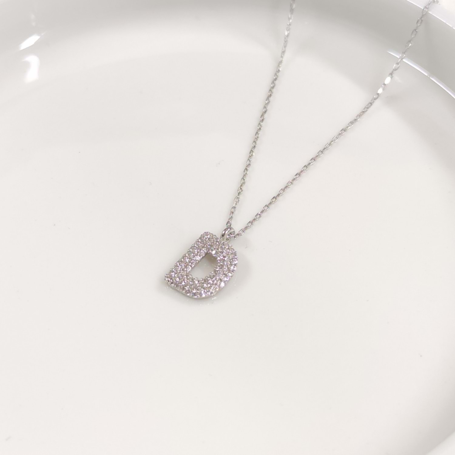 D TAŞLI GÜMÜŞ HARF KOLYE - RODYUM BEYAZ