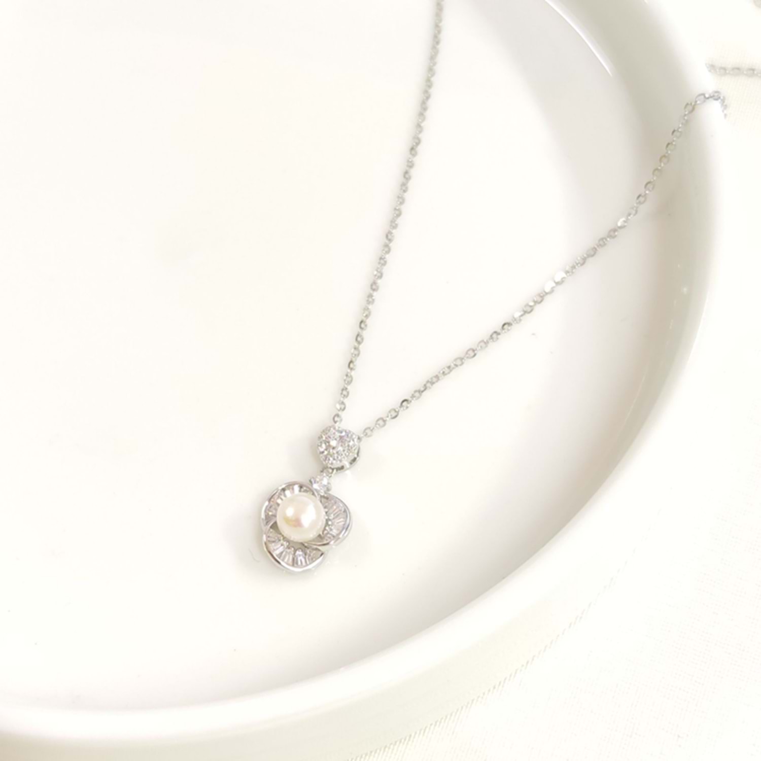 İTHAL 10 MM İNCİ ÇİÇEK KALP DETAY GÜMÜŞ KOLYE