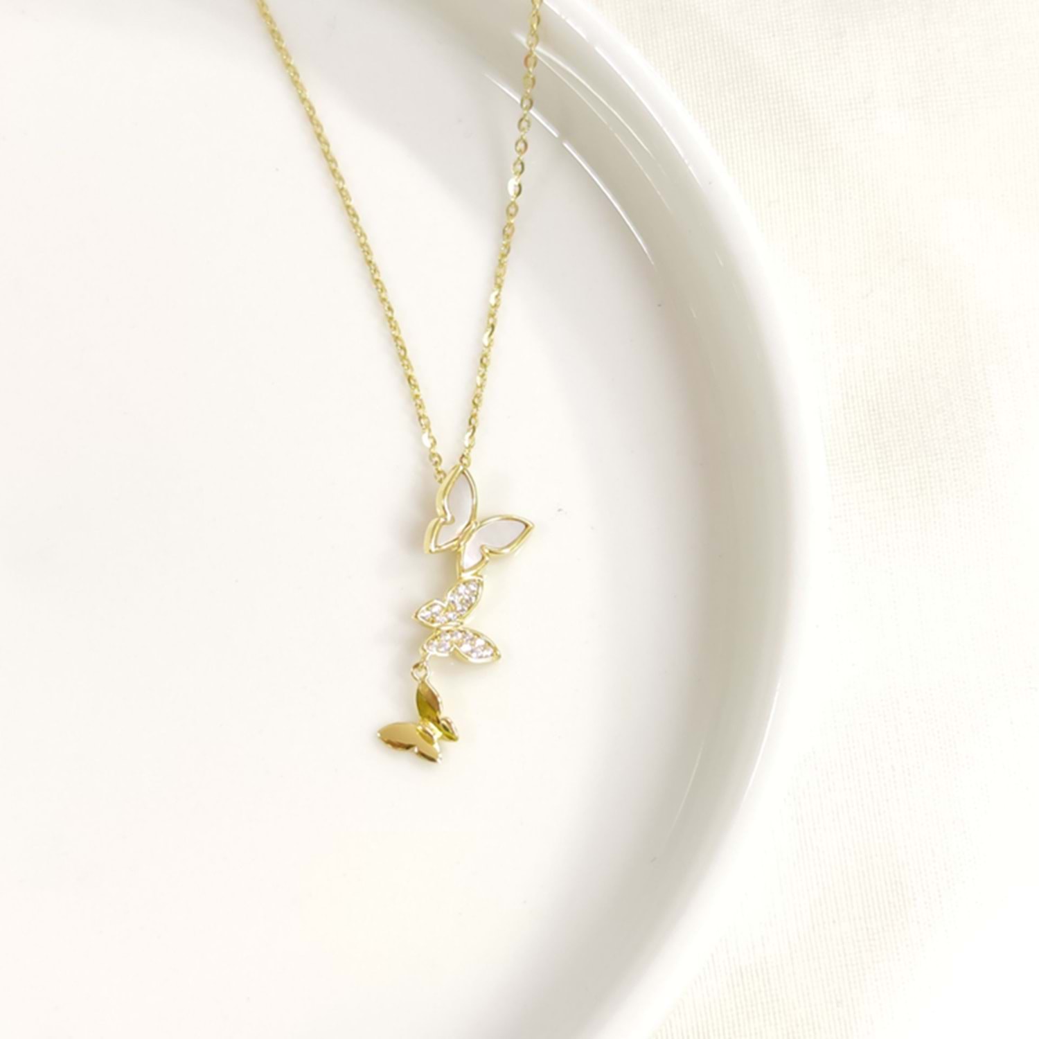 İTHAL 25 MM ÜÇLÜ KELEBEK GÜMÜŞ KOLYE - ALTIN SARI