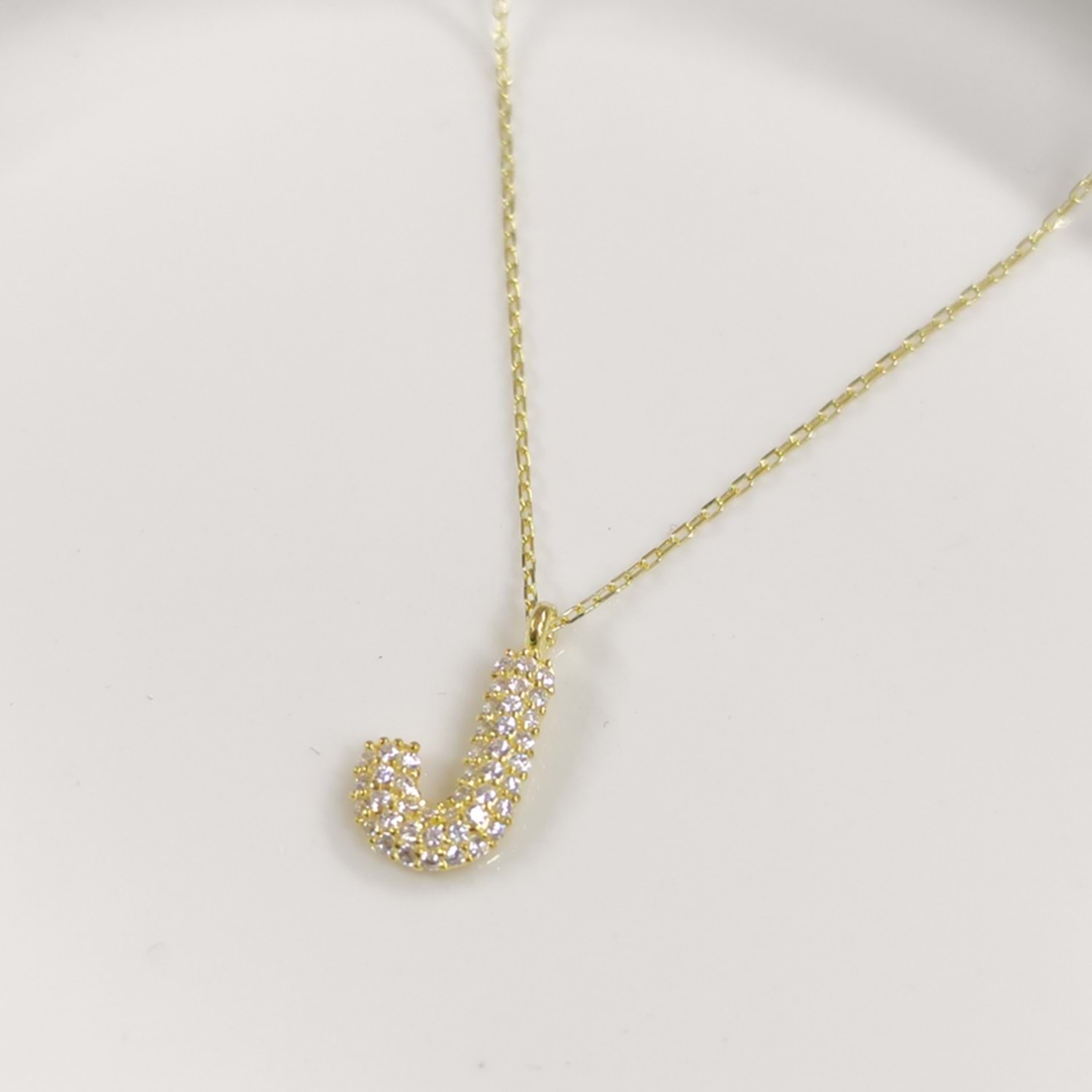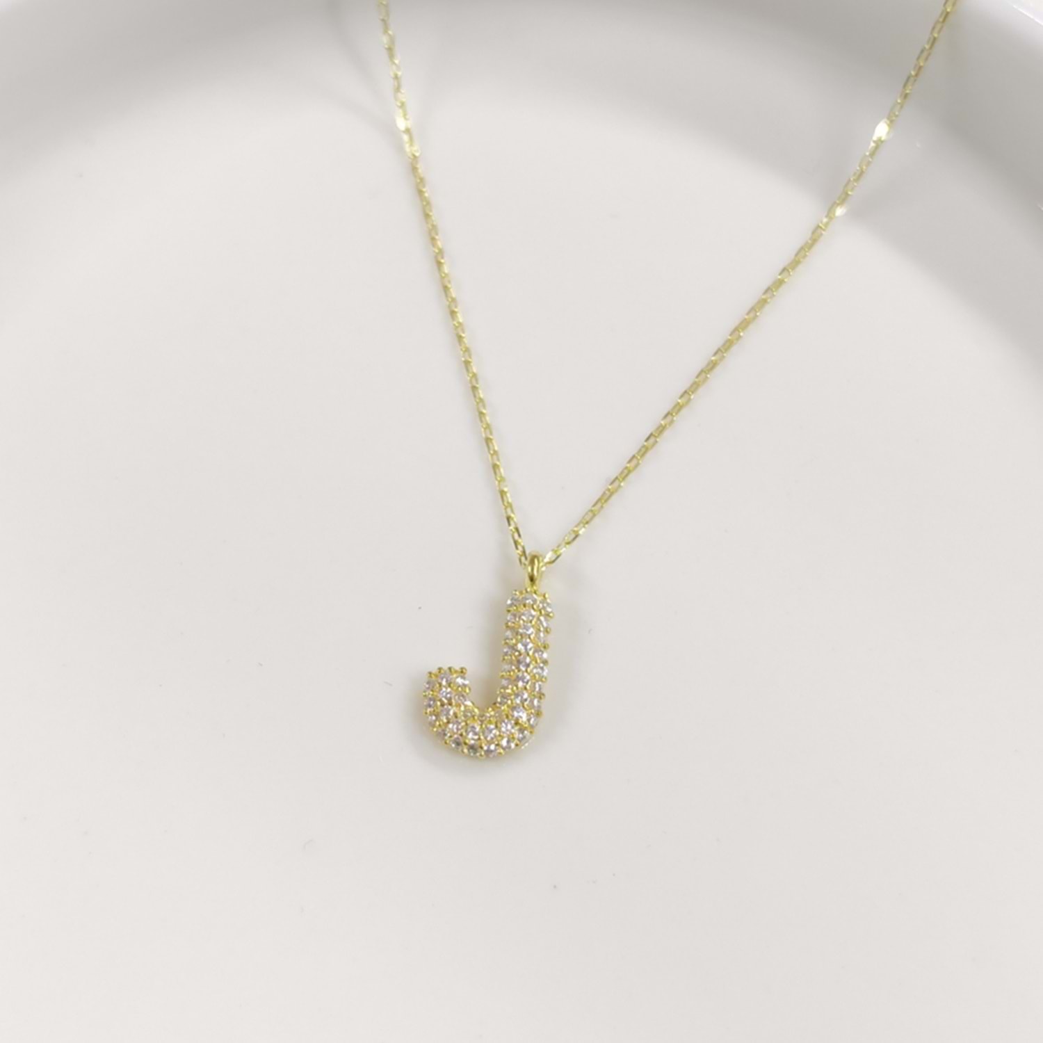 J TAŞLI GÜMÜŞ HARF KOLYE - ALTIN SARI
