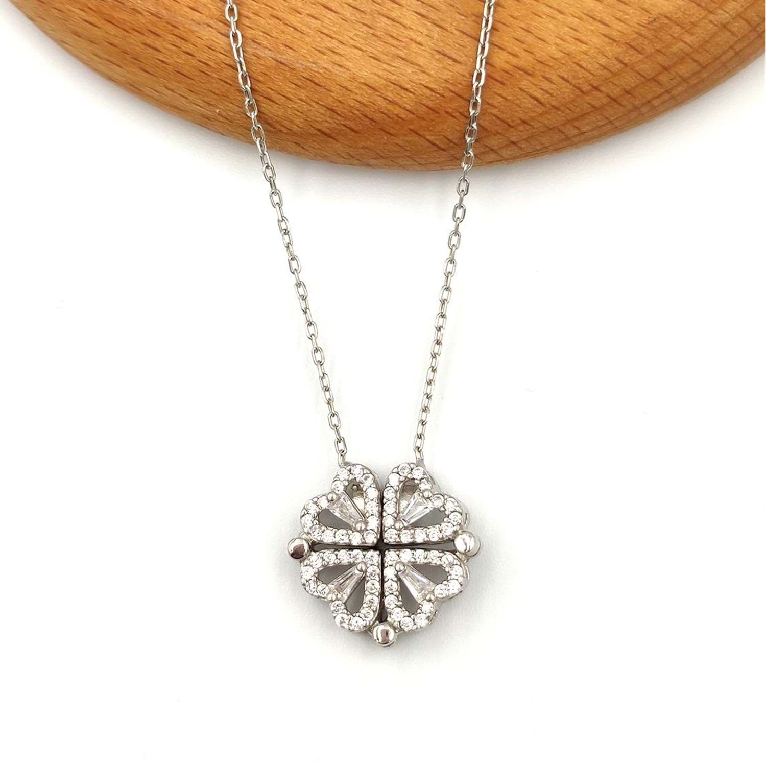 MIKNATISLI DÖRT YAPRAKLI ŞANS YONCA AÇILIR KAPANIR KOLYE İKİ TÜRLÜ DE KULLANILABİLİR. BAGET DETAYLI YONCA KOLYE
