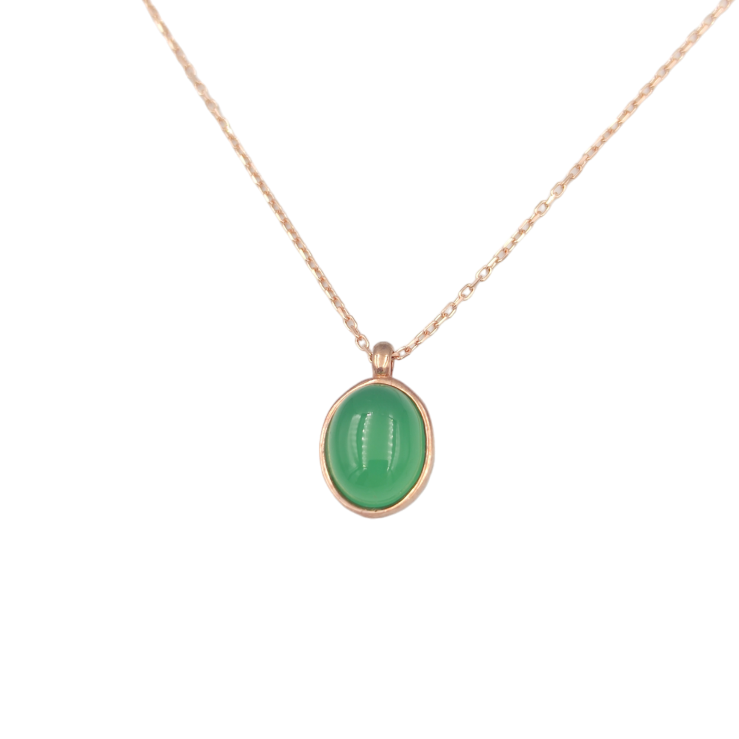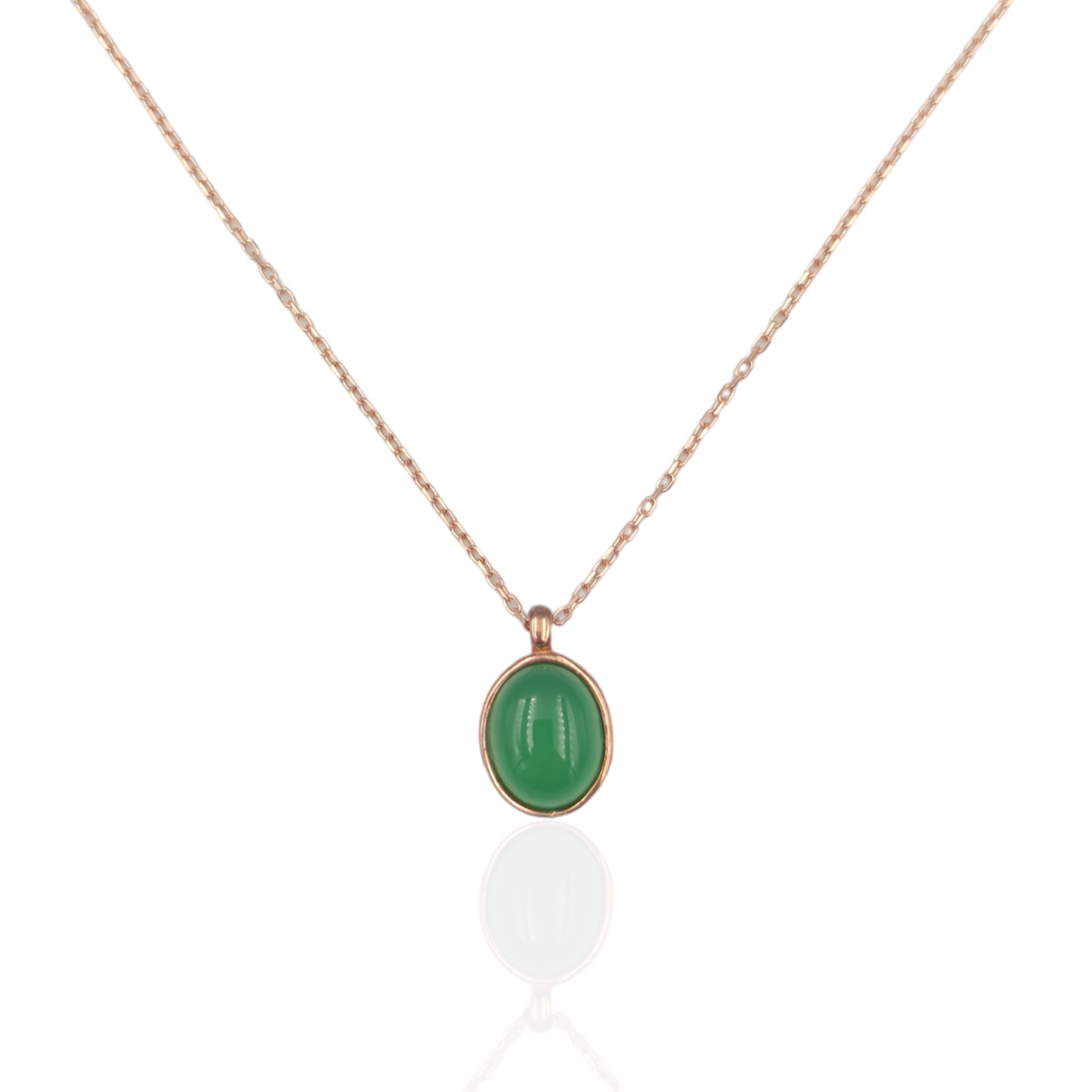 YEŞİL AKİK ZİRKON TAŞLI MİNİ OVAL GÜMÜŞ KOLYE - ROSE BAKIR