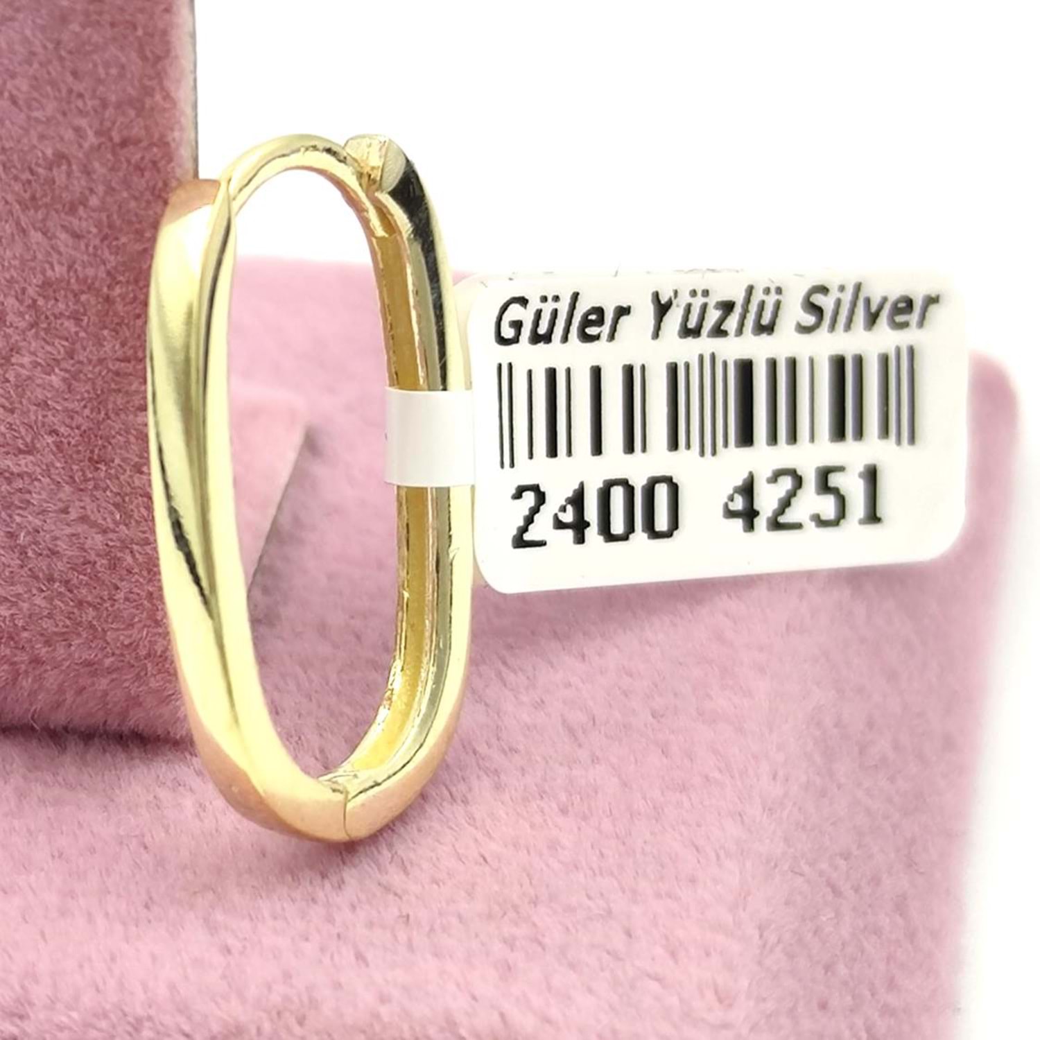 20 MM DÜZ OVAL GÜMÜŞ KÜPE - ALTIN SARI