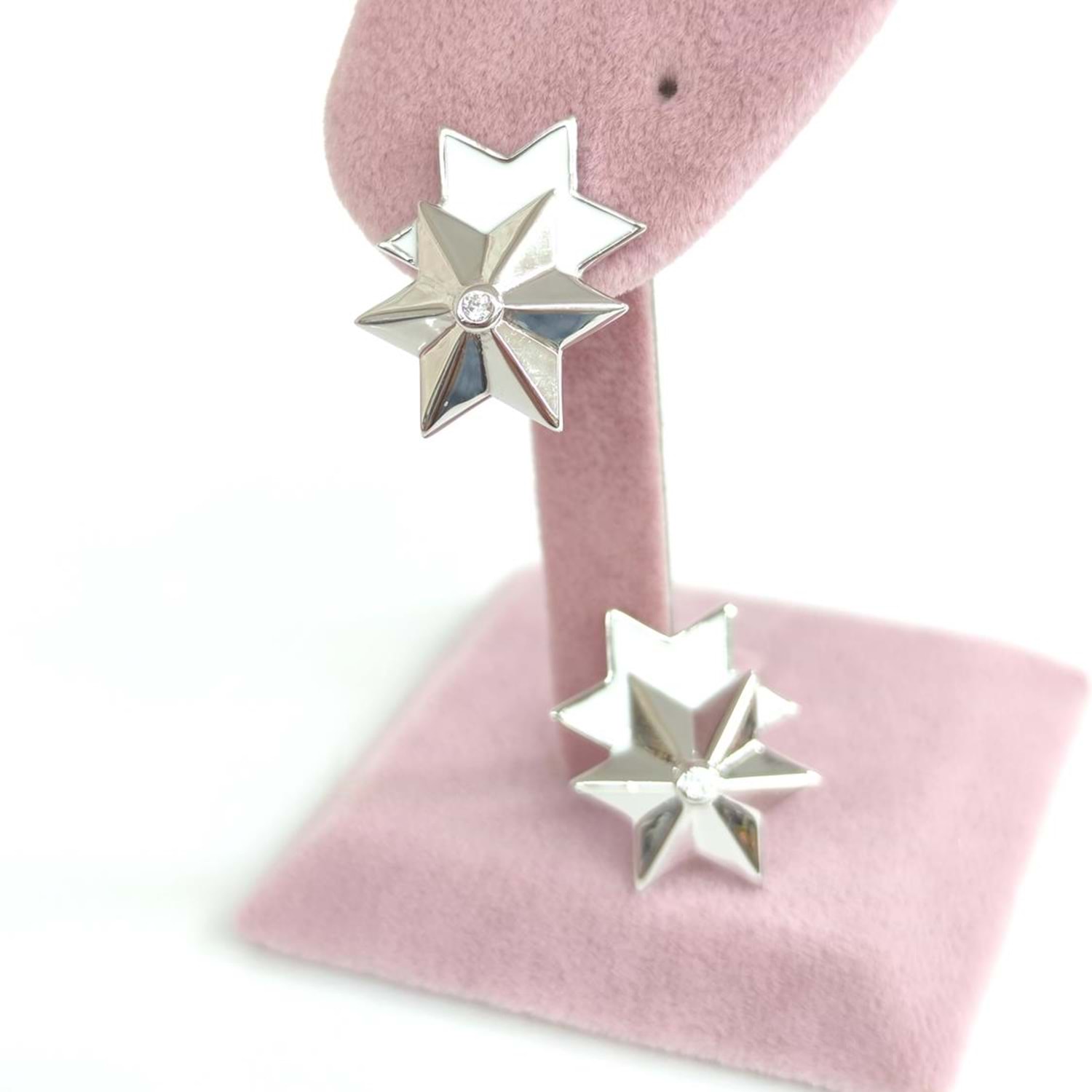BİRLEŞİK YILDIZ BEYAZ MİNELİ GÜMÜŞ KÜPE - RODYUM BEYAZ