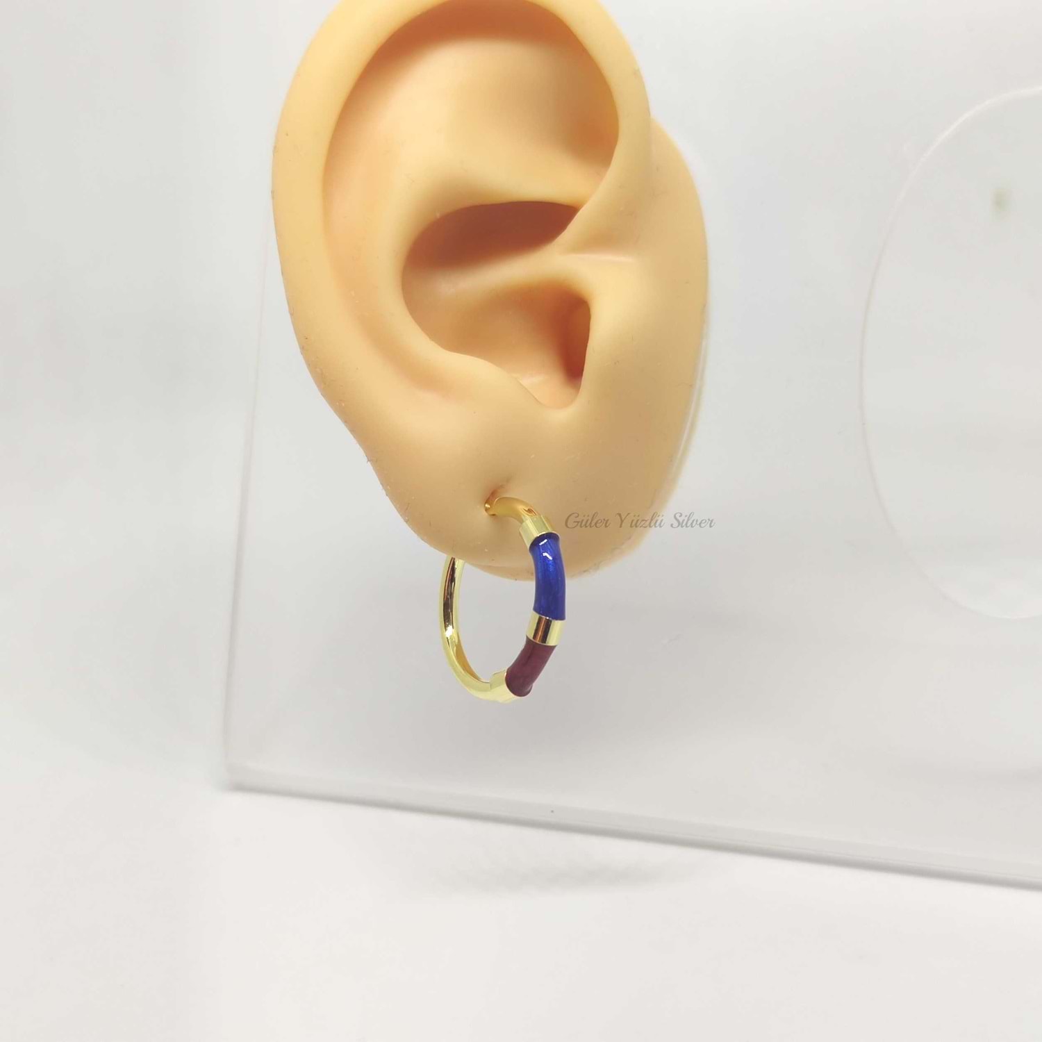 ITALY 16 MM MİNELİ HALKA GÜMÜŞ KÜPE - ALTIN SARI