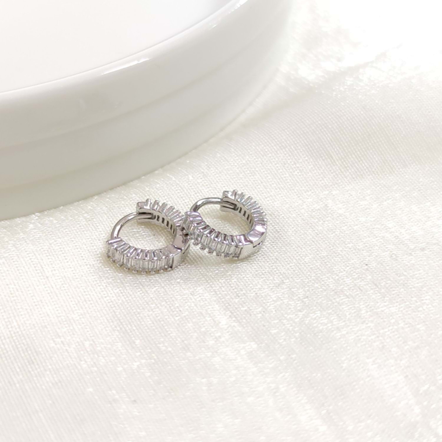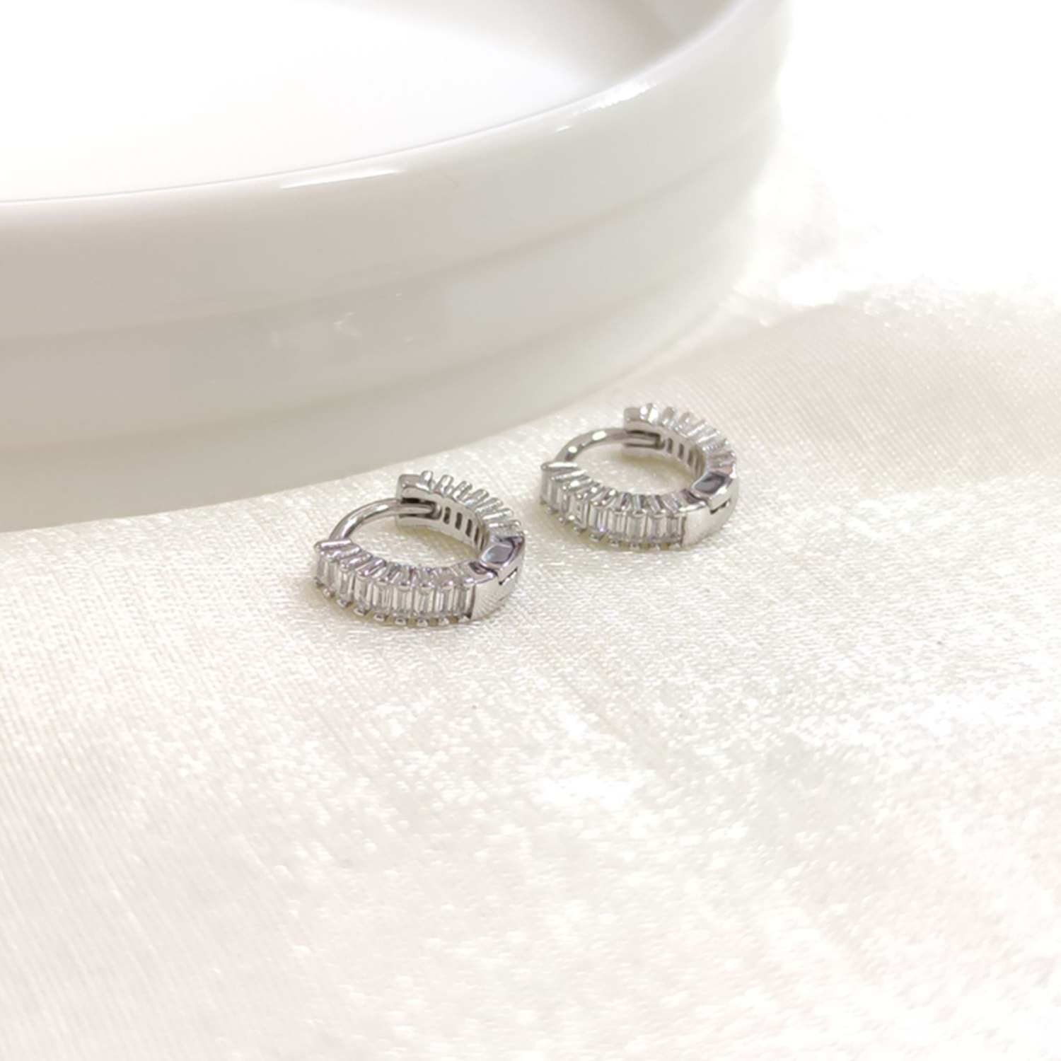 İTHAL 8 MM BAGET TAŞLI GÜMÜŞ HALKA KÜPE