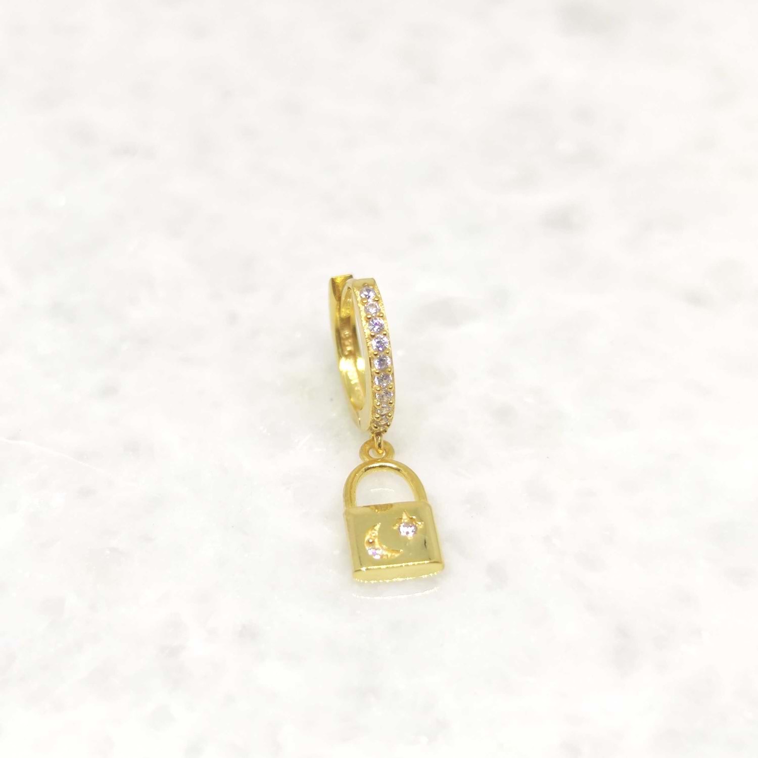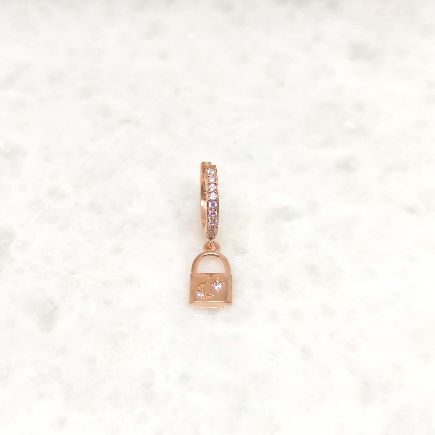 ay yıldız detaylı kilit minimal taşlı halka gümüş küpe