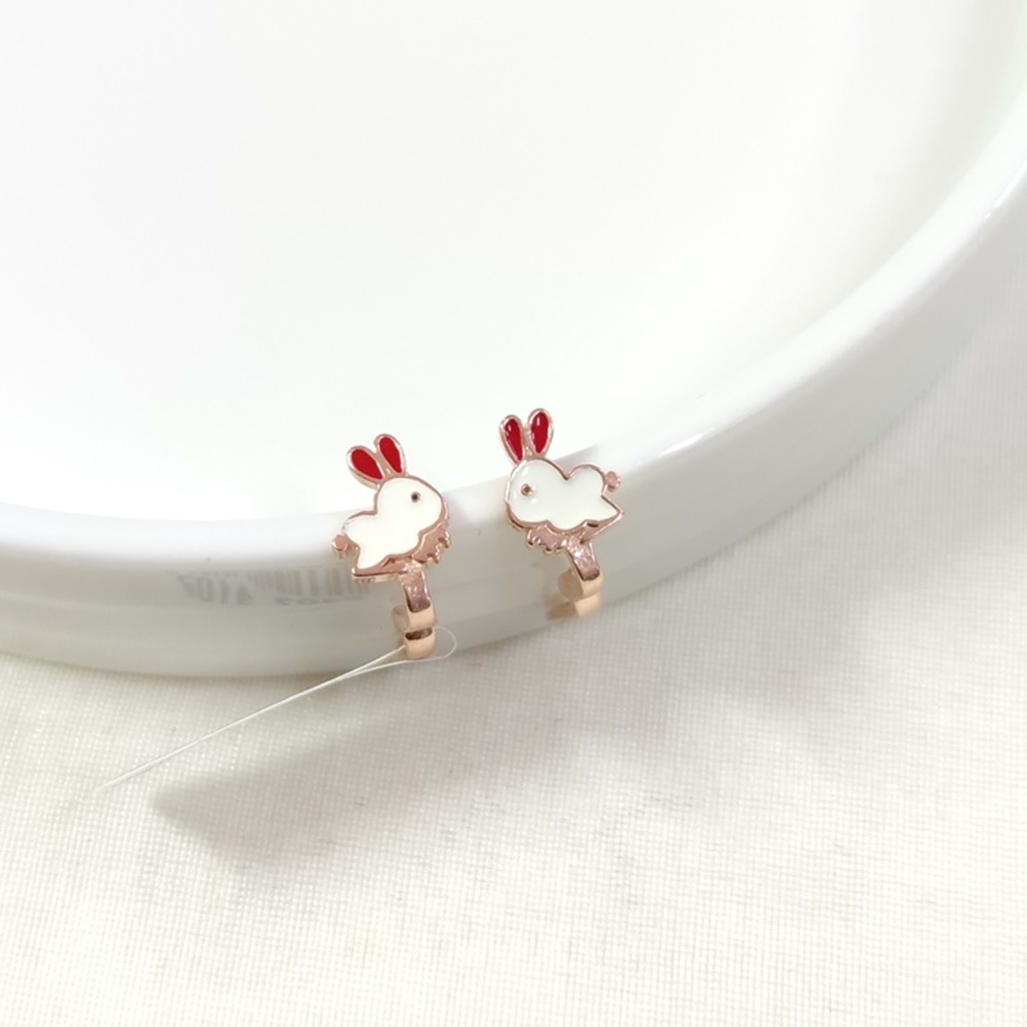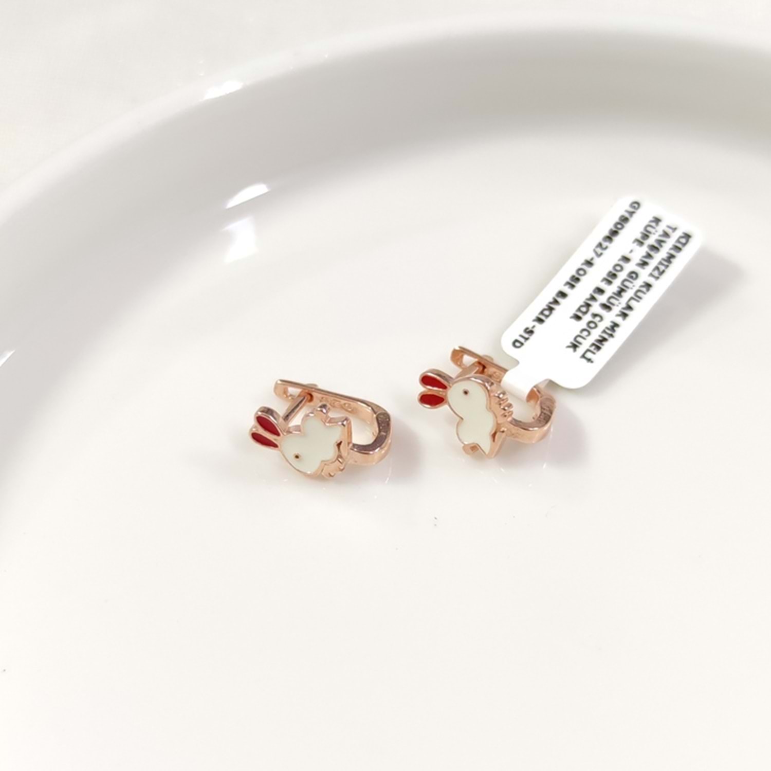 KIRMIZI KULAK MİNELİ TAVŞAN GÜMÜŞ ÇOCUK KÜPE