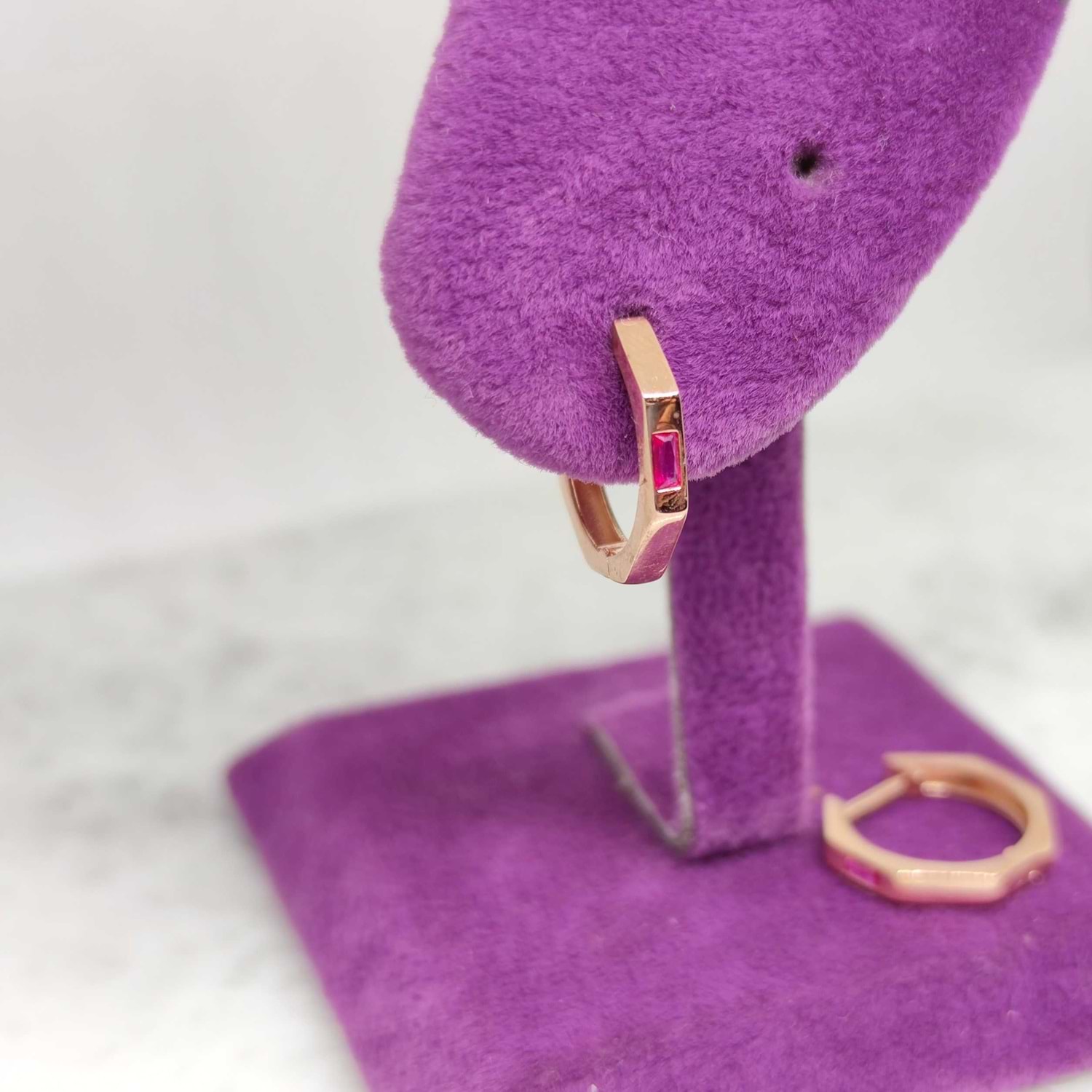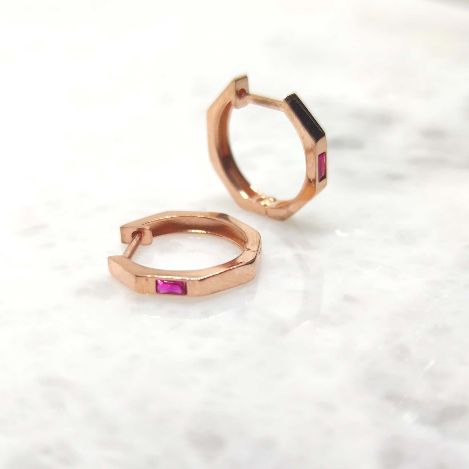 KIRMIZI TAŞLI KÖŞELİ HALKA GÜMÜŞ KÜPE - ROSE BAKIR